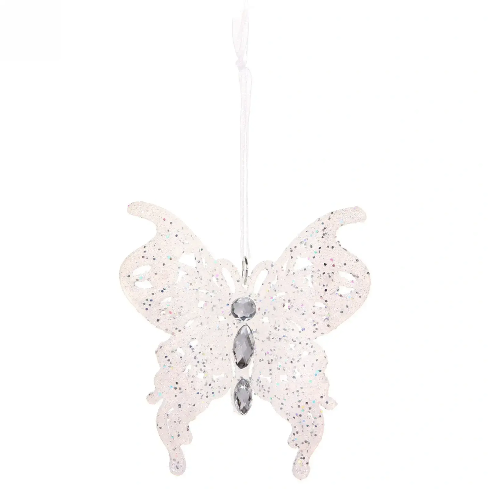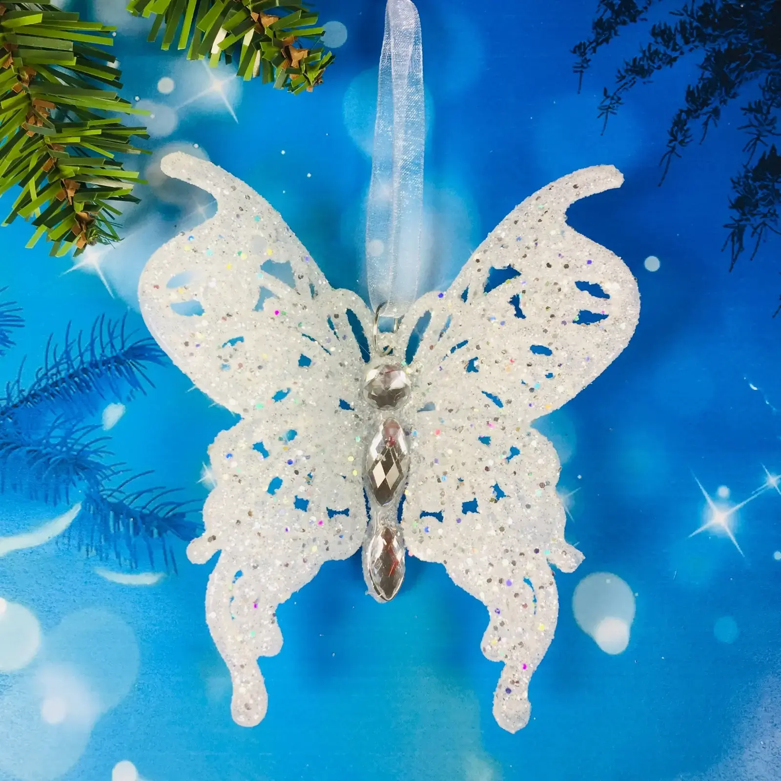 Эта изящная подвеска в форме бабочки станет настоящим украшением вашего дома в новогодние праздники. Выполненная в белом цвете с блестящей текстурой, она добавит нотку волшебства и уюта в любое пространство. Благодаря своему уникальному дизайну, подвеска привлекает внимание и создает атмосферу праздника.