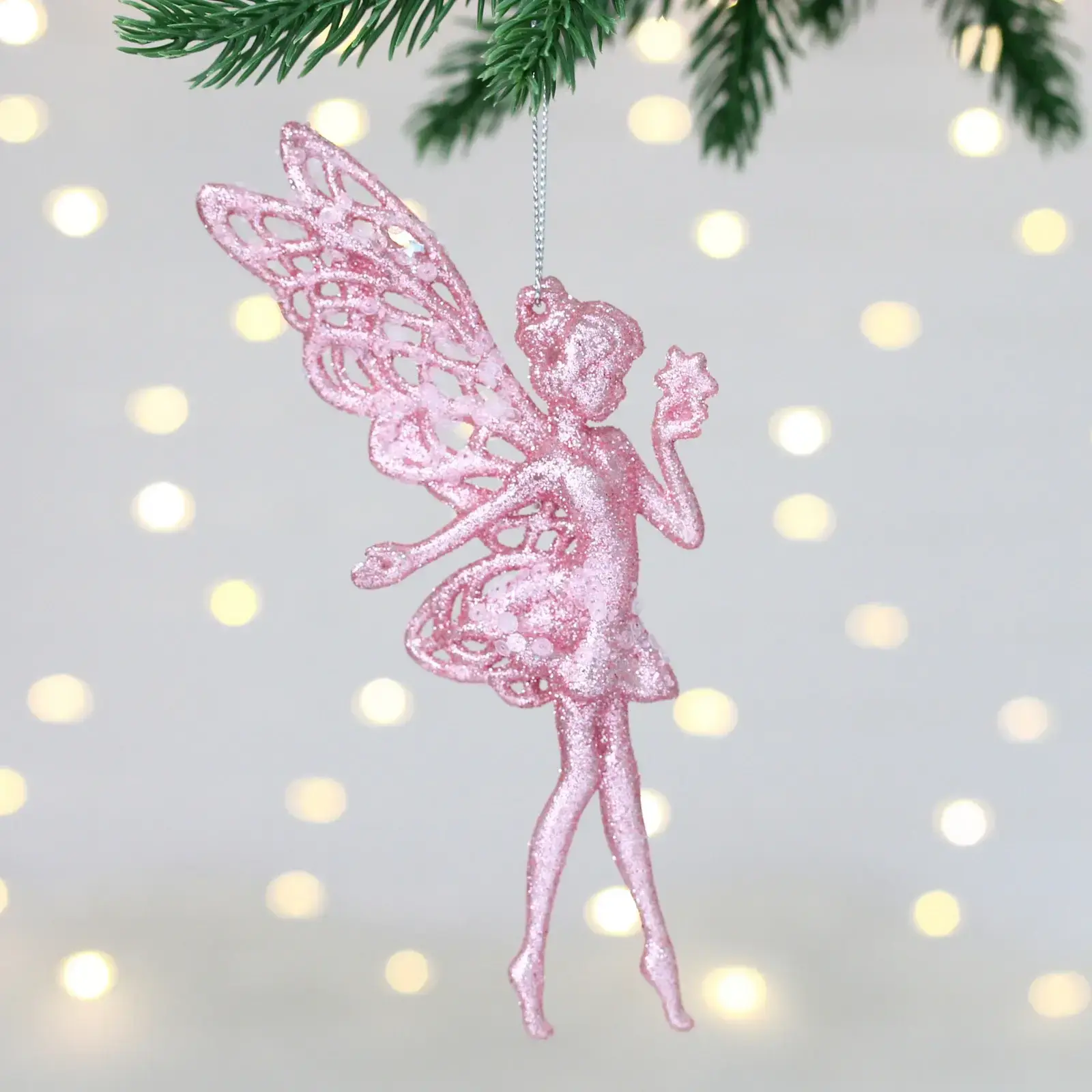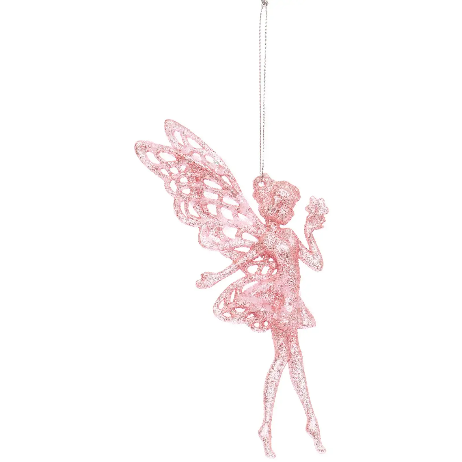 Создайте атмосферу праздника с помощью подвески «Сказочная фея». Эта изящная фигурка, выполненная в розовом цвете и покрытая блестками, станет ярким акцентом в вашем интерьере. Она идеально подходит для украшения новогодней елки или создания уютного настроения в любом помещении.