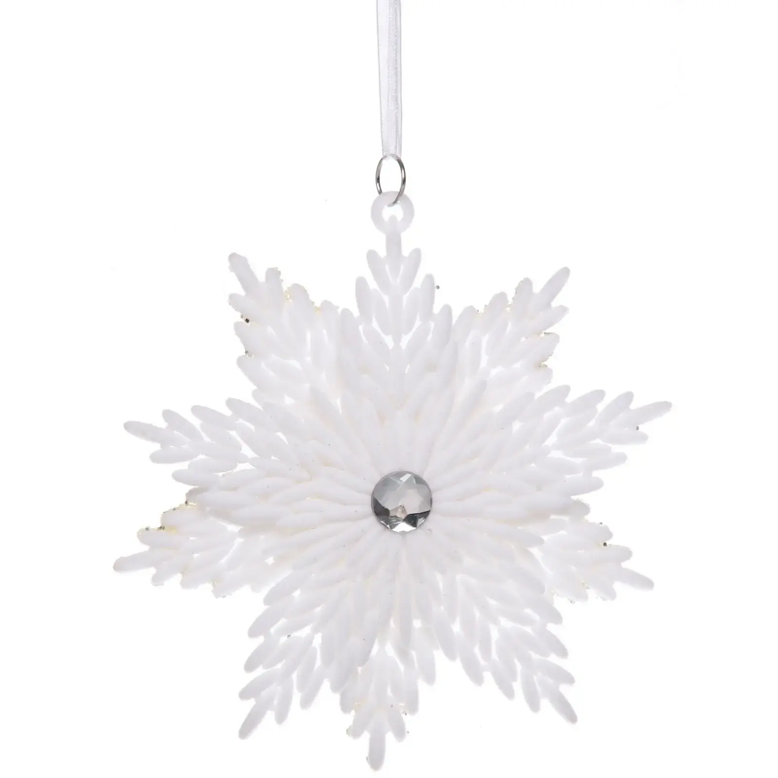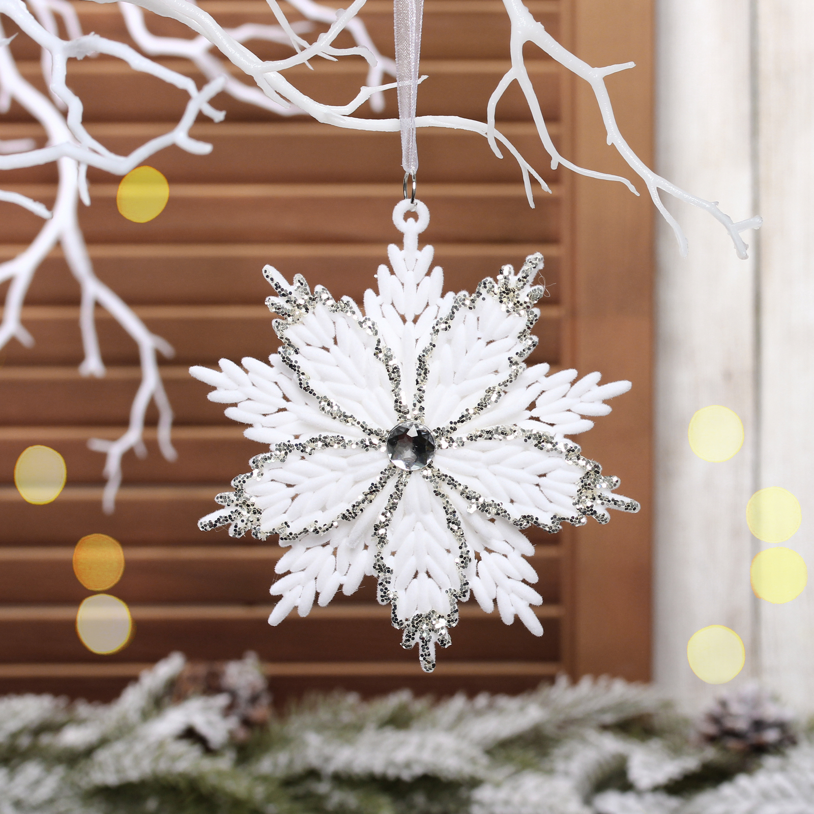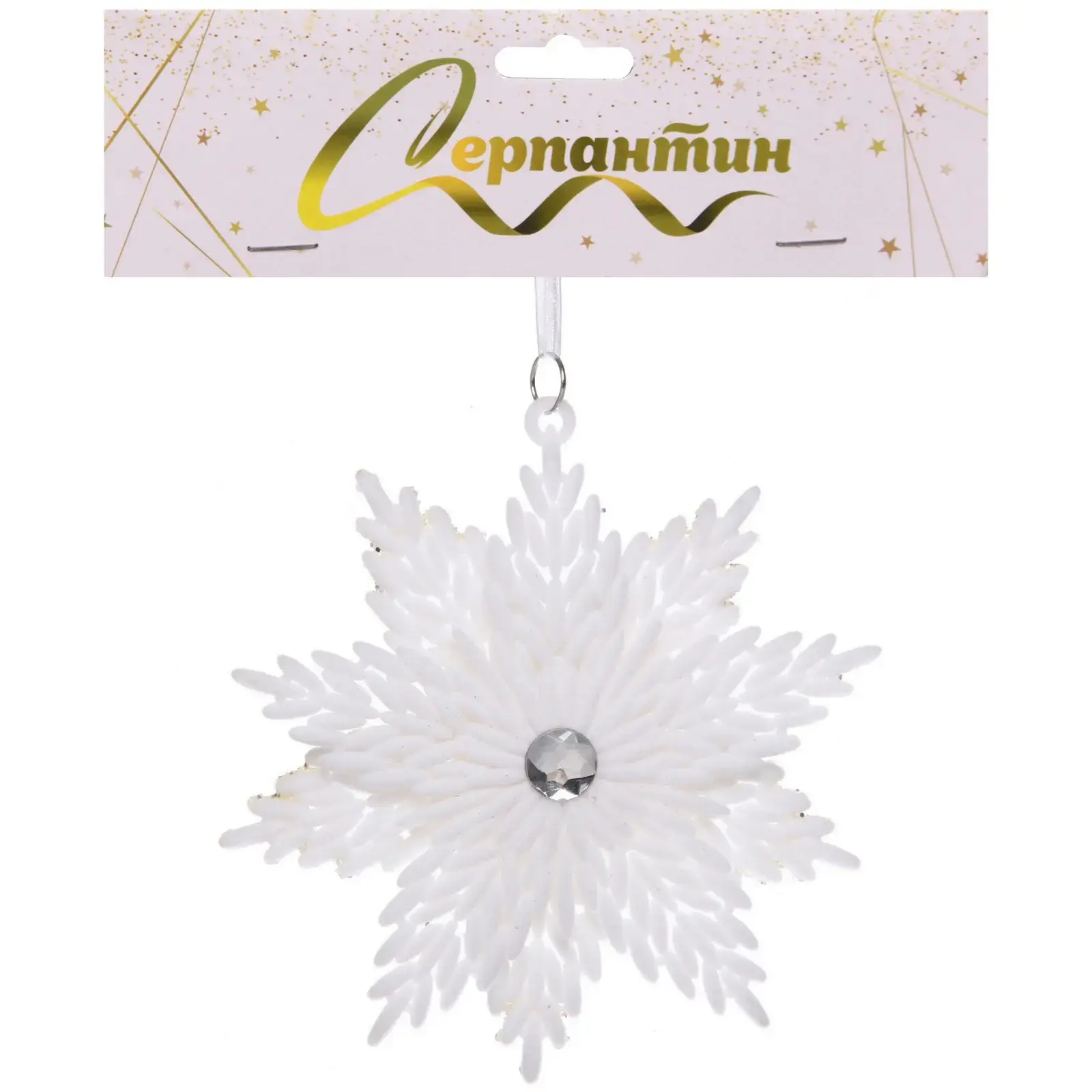 - Стильный дизайн: ажурная форма снежинки с текстурой морозных узоров и кристаллической вставкой в центре