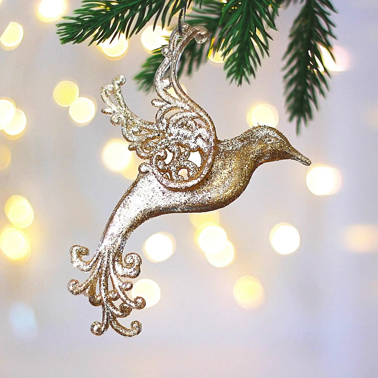 Размер подвески составляет 12 см, что делает ее компактной и удобной для размещения. Золотой цвет и блестящая текстура придают изделию праздничный вид, а легкий материал позволяет легко подвешивать его в любом месте. Подвеска «Сказочная птица» станет не только украшением, но и символом волшебства в вашем доме.