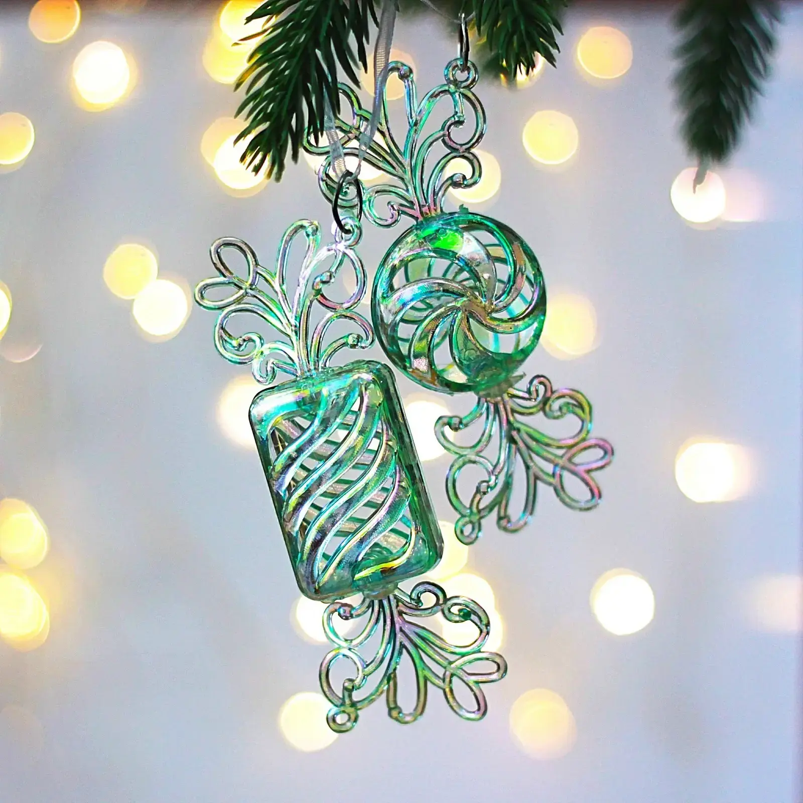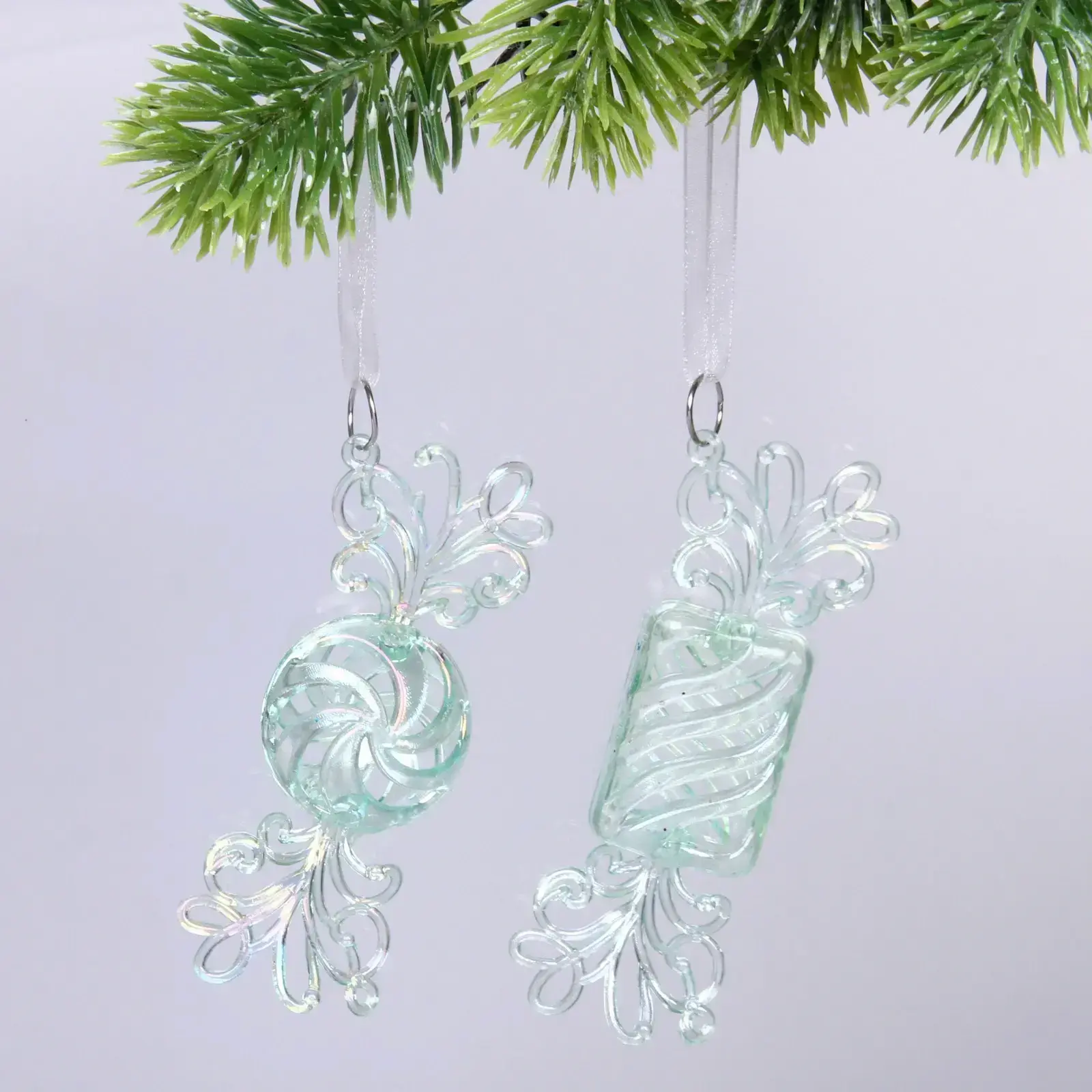 Создайте атмосферу волшебства и уюта с подвеской «Сказочная сладость». Эти изящные украшения в форме конфет добавят яркие акценты в ваш интерьер и станут отличным дополнением к новогоднему декору. Изготовленные из прозрачного пластика, они обладают легким зеленоватым оттенком и переливаются при свете, создавая эффект радужного сияния.
