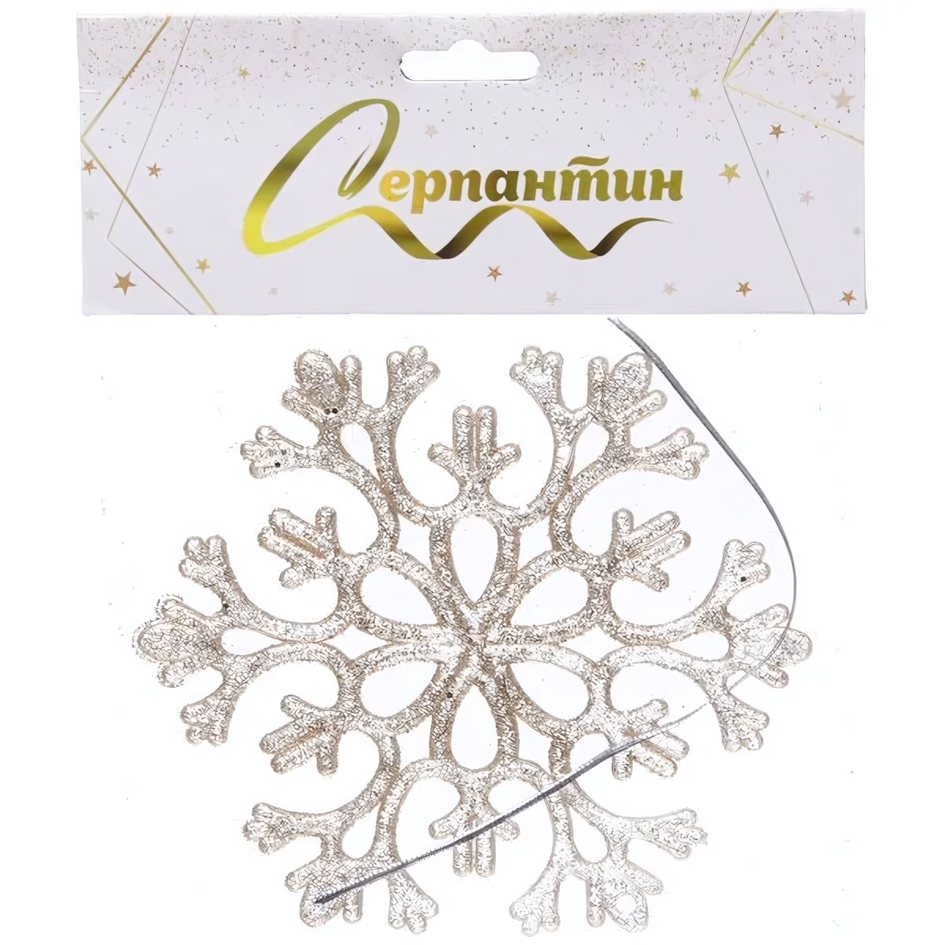 Эта изящная подвеска в форме снежинки станет ярким акцентом вашей новогодней елки, создавая атмосферу праздника и волшебства. Ее золотистая поверхность с блестками празднично переливается в свете гирлянд, даря ощущение тепла и уюта.