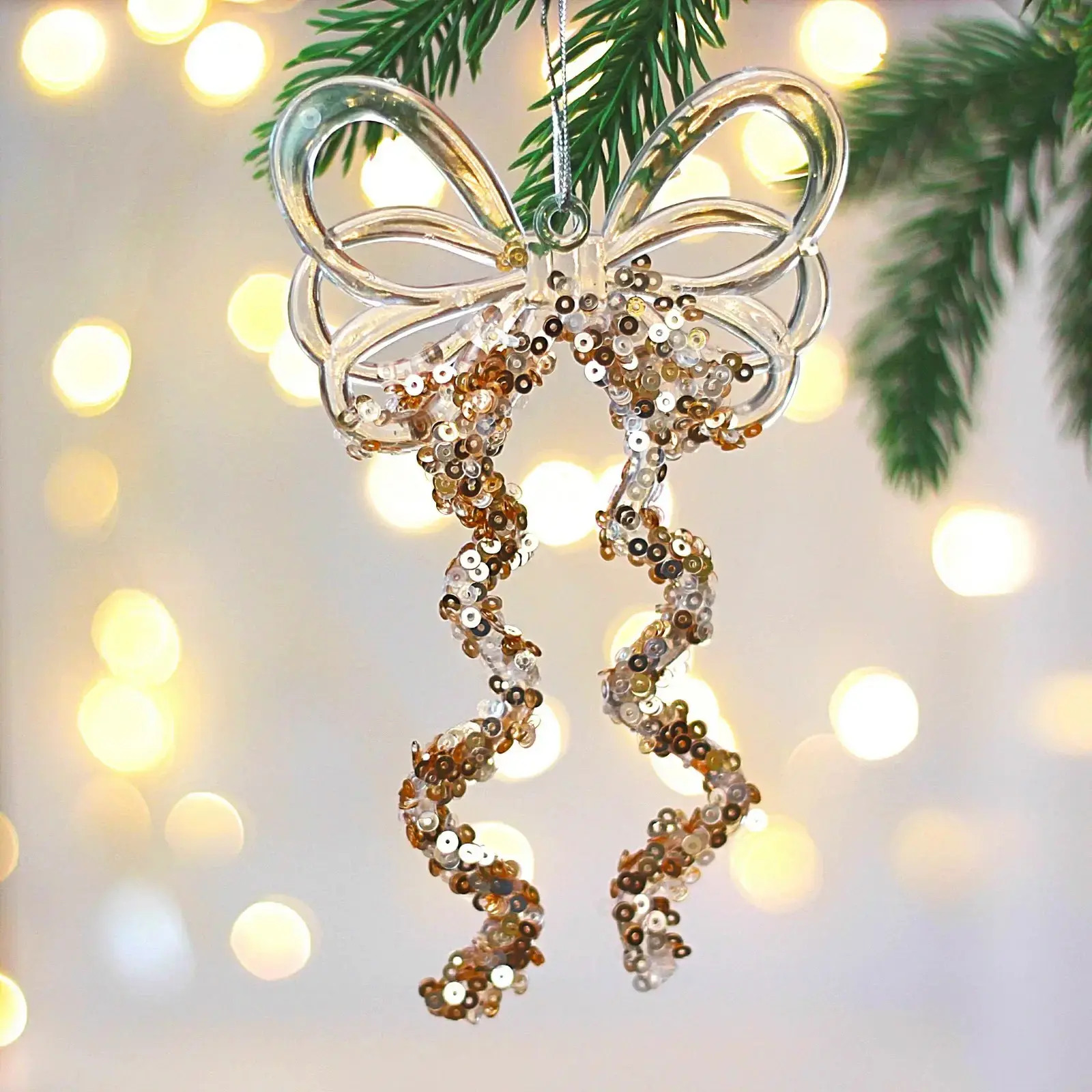 Выбирая эту подвеску, вы получаете не только красивый, но и практичный элемент декора. Она выполнена из качественного пластика, что обеспечивает долговечность и устойчивость к повреждениям. Блестящие элементы придают изделию особый шарм, а прозрачный материал создает эффект легкости и воздушности.