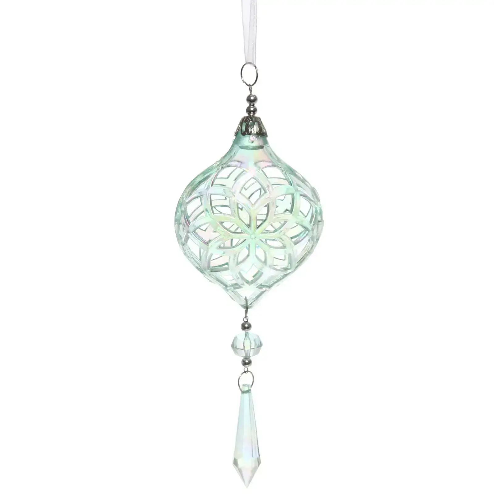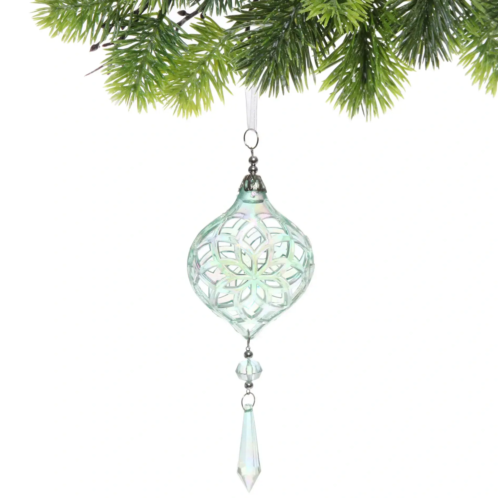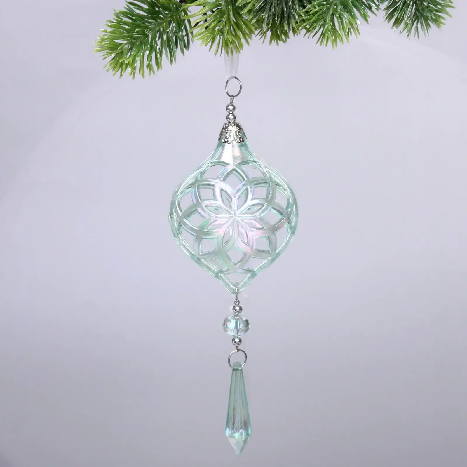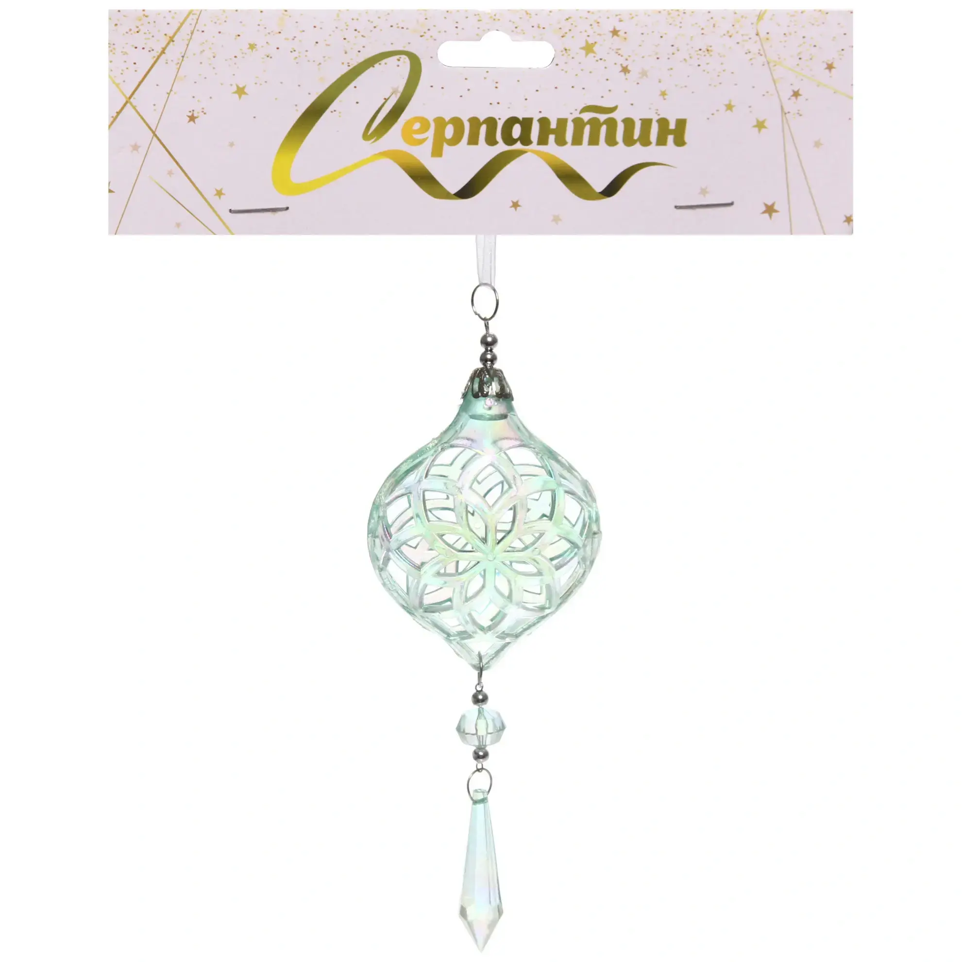 Подвеска легко крепится благодаря металлическому кольцу, что позволяет использовать её в различных интерьерах. Она идеально подходит для тех, кто хочет добавить изюминку в оформление своего дома на Новый год или другие праздники. Декоративный элемент в форме капли, выполненный из прозрачного материала, добавляет легкости и воздушности.