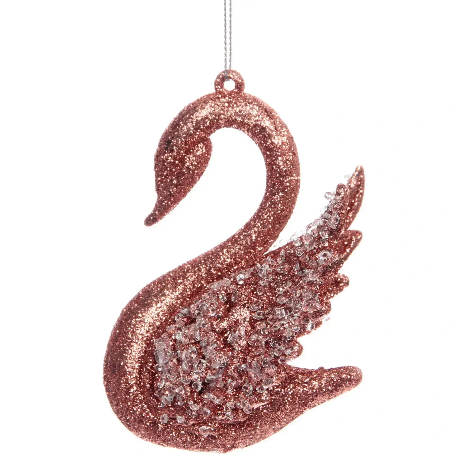 Подвеска выполнена из качественного пластика, что делает её легкой и безопасной для использования в любом интерьере. Розовый цвет с блестками добавляет яркости и радости, а изогнутая форма лебедя придаёт изделию изящество. Не упустите возможность сделать ваш праздник незабываемым с этой уникальной подвеской!