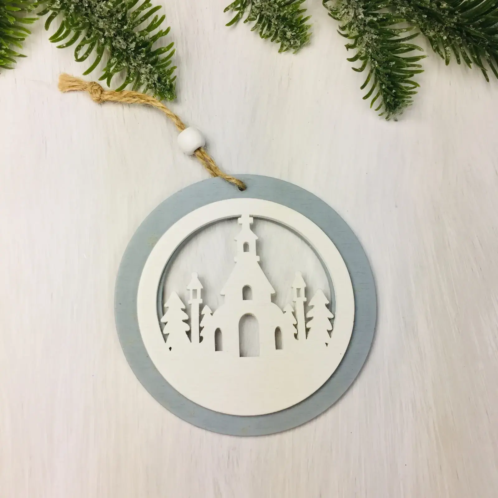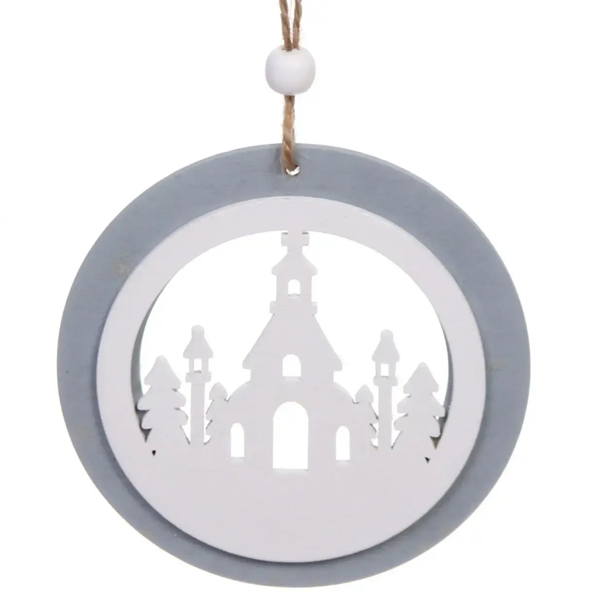 Подвеска новогодняя 'Сказочный лес' 10см, серый/белый, дерево