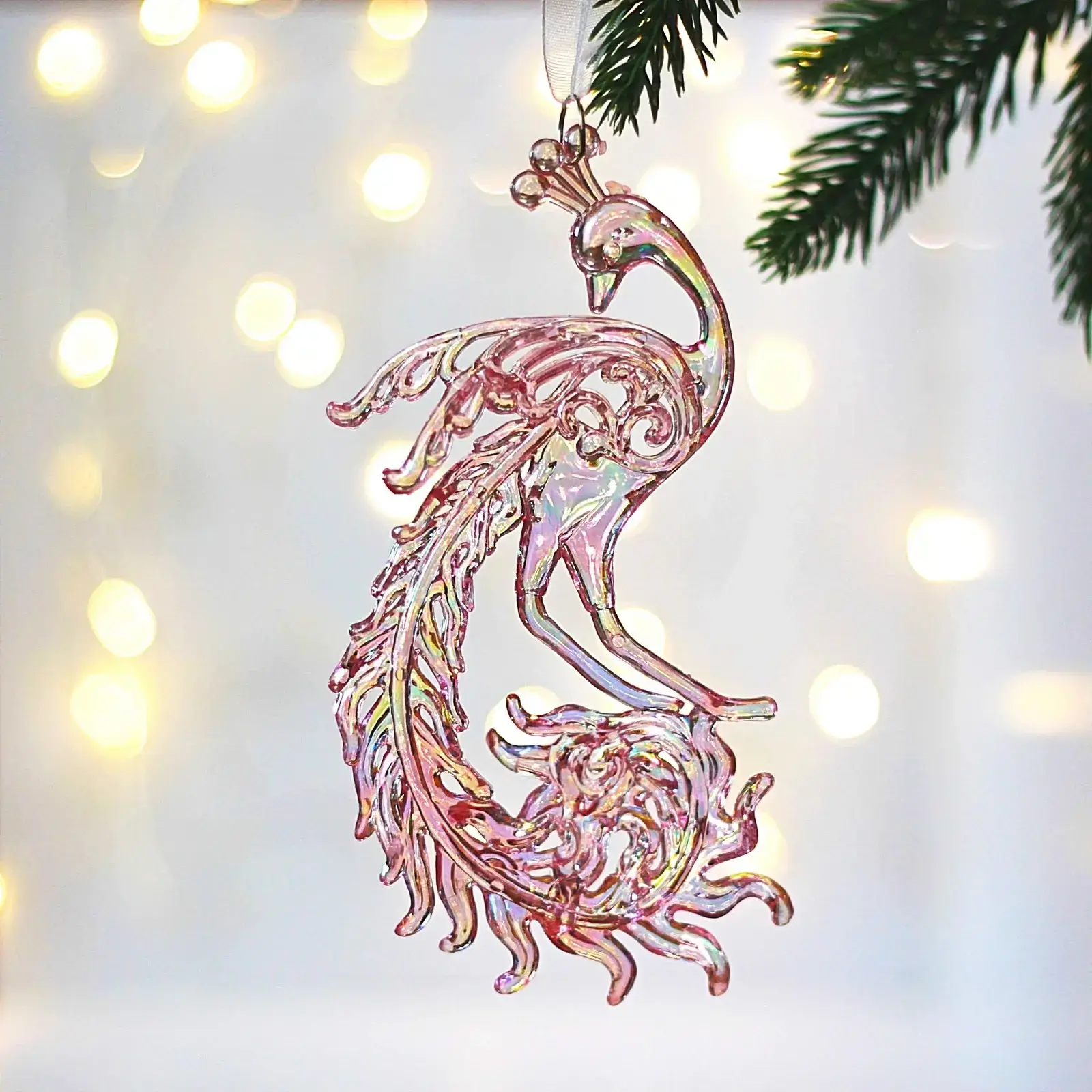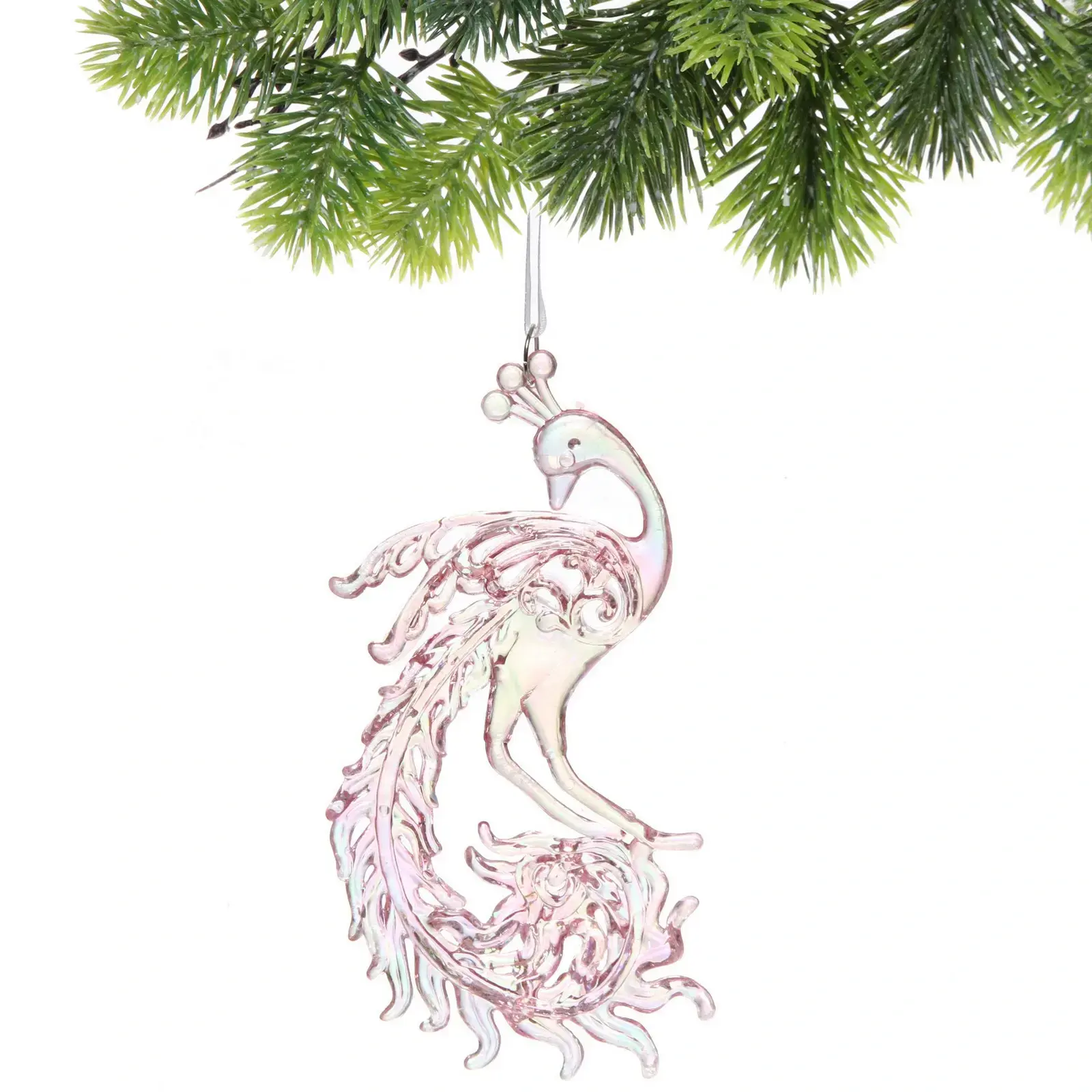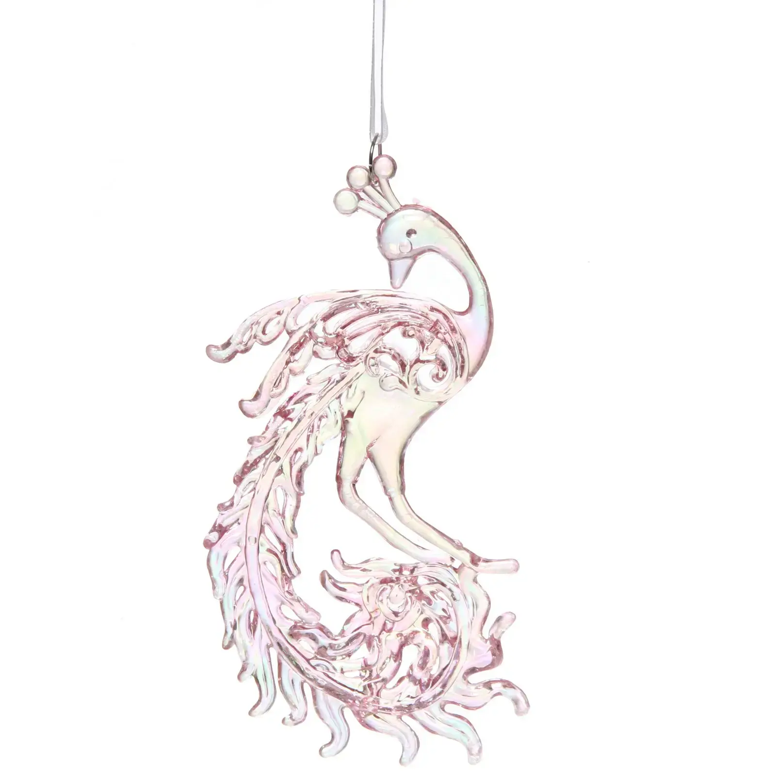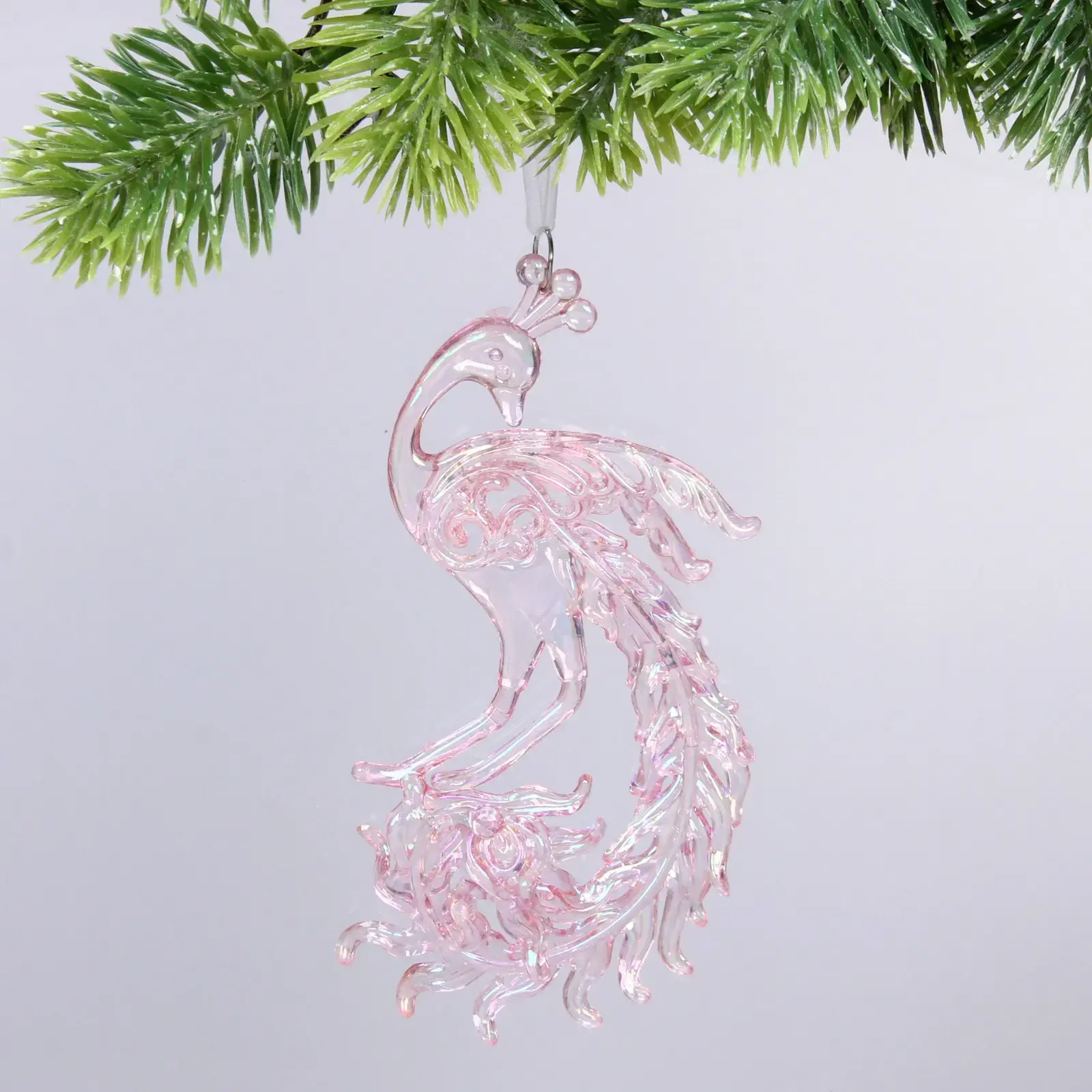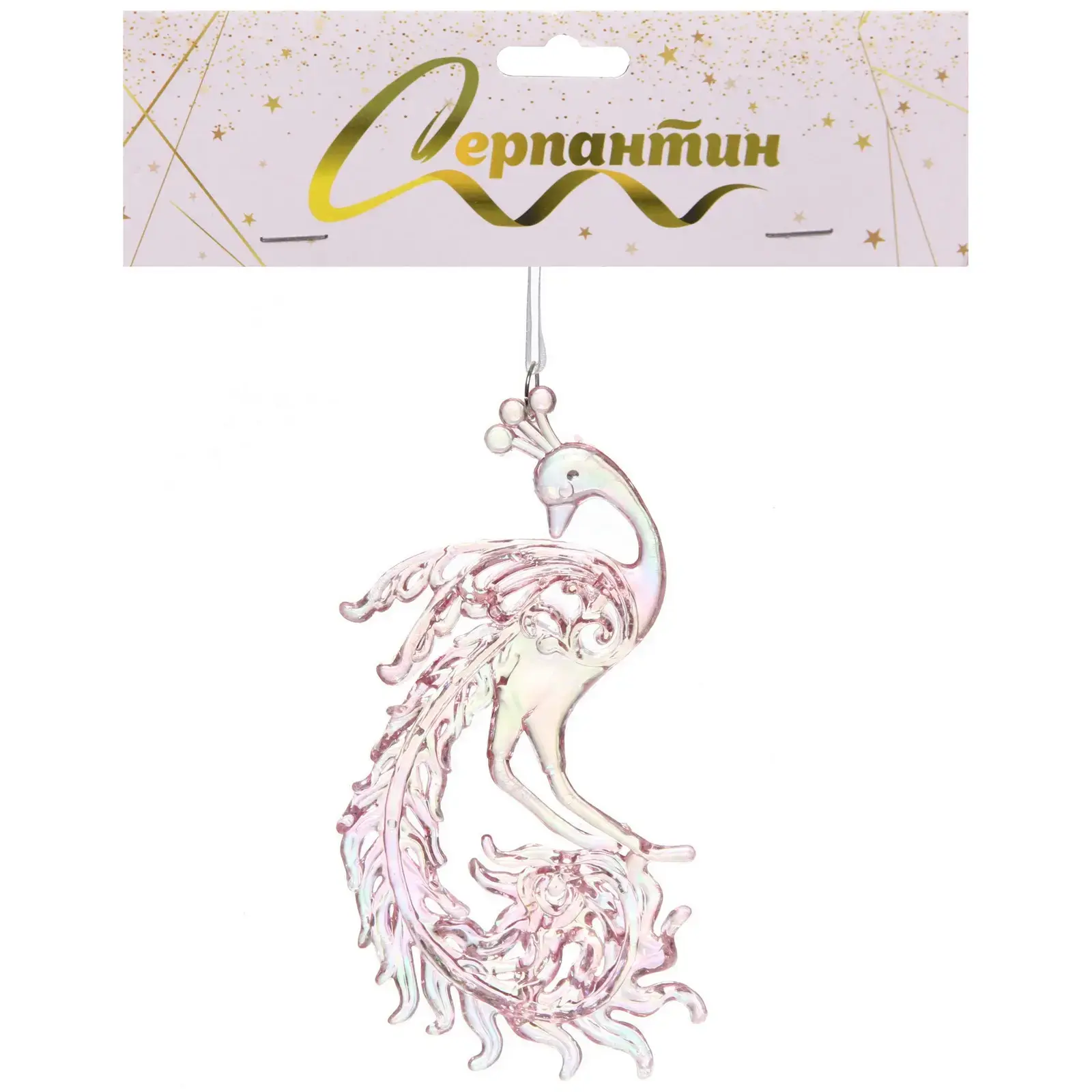 Эта изящная подвеска в форме павлина добавит волшебства и уюта в ваш дом. Выполненная из прозрачного материала с нежным розовым оттенком, она станет ярким акцентом в любом праздничном оформлении. Благодаря своему уникальному дизайну, подвеска привнесет атмосферу праздника и радости в ваш дом.
