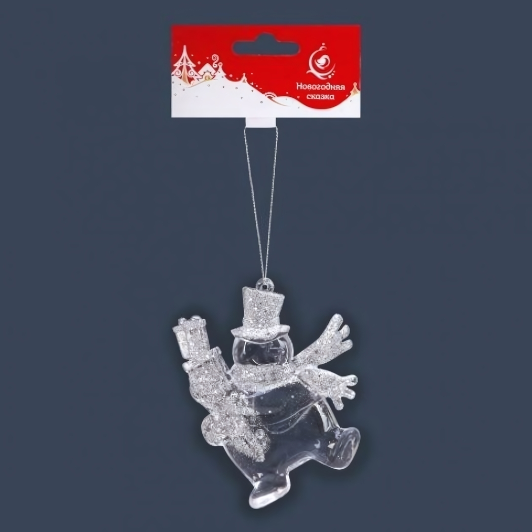 Подвеска снеговик «новогодняя сказка», блестящая прозрачность, 10,5×8,5 см, серебристый цвет, готова к украшению ёлки