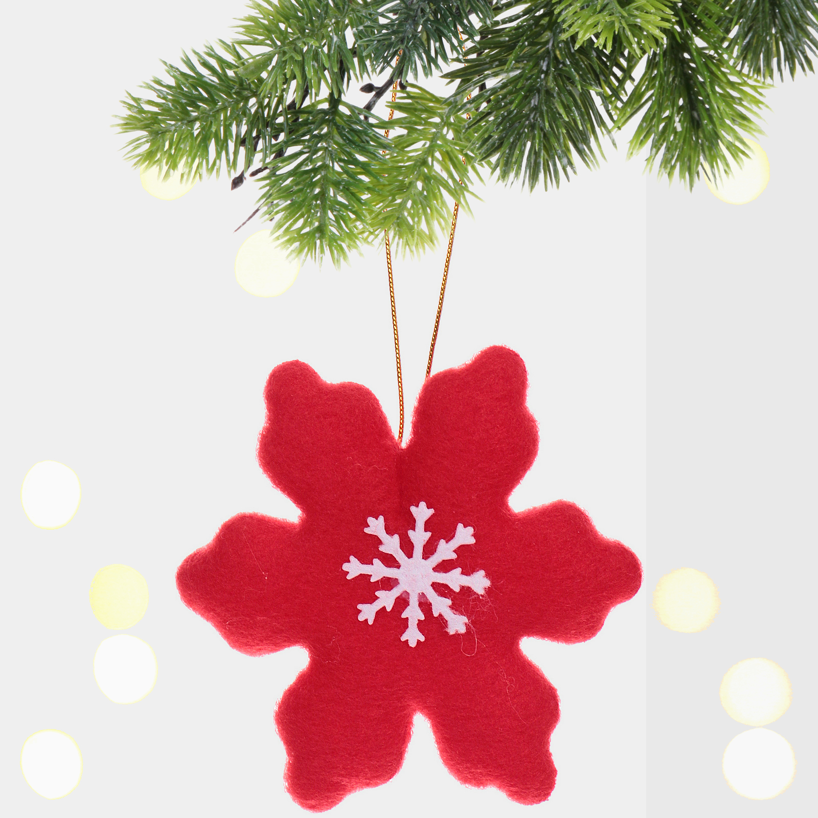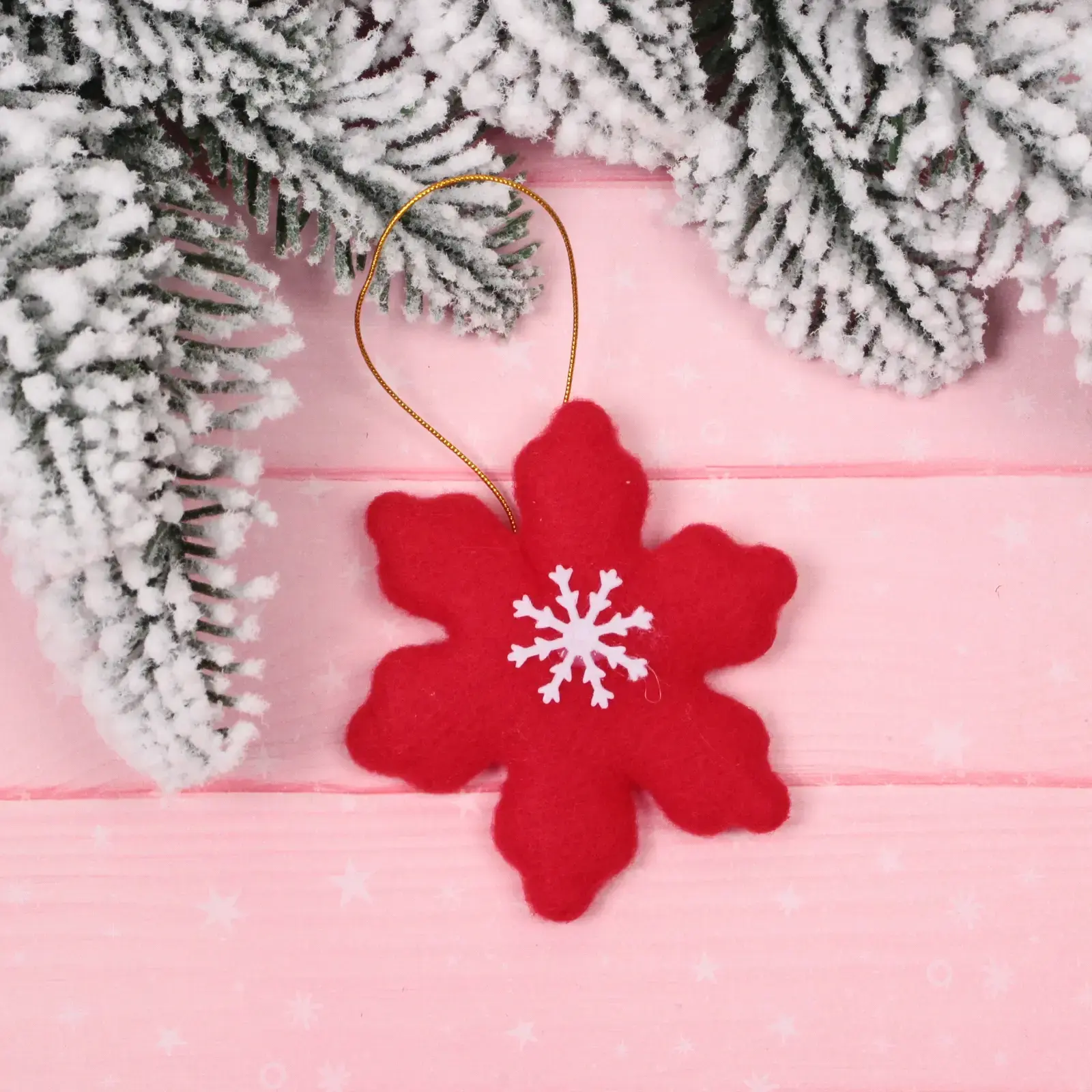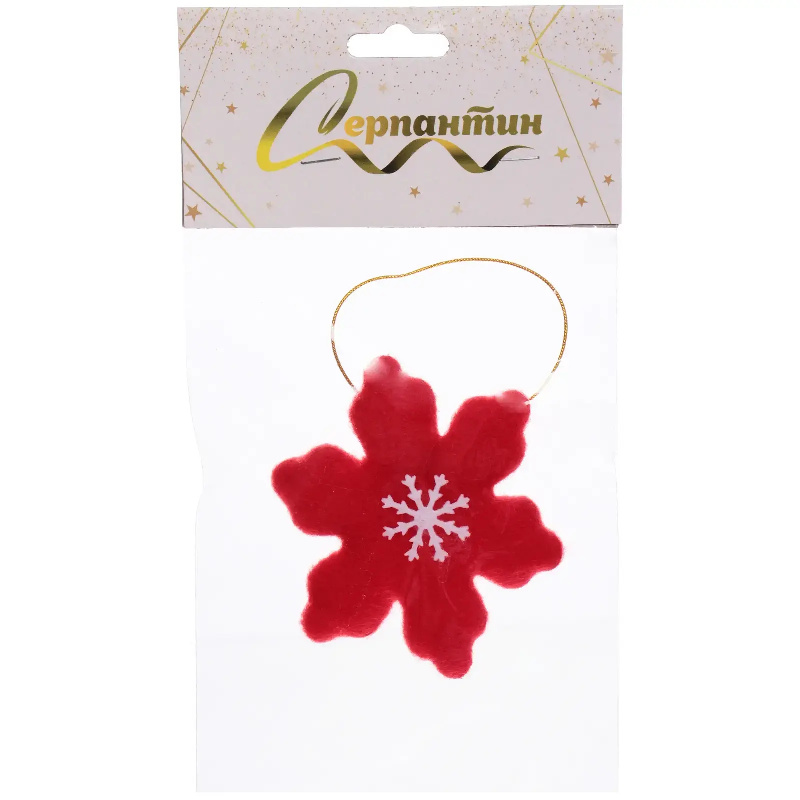 Создайте атмосферу уюта и волшебства с подвеской «Снежинка»! Это декоративное изделие станет ярким акцентом в вашем новогоднем интерьере. Выполненная из мягкого текстиля, подвеска имеет насыщенный красный цвет с белым узором снежинки, что придаёт ей особую привлекательность. Золотистая петля для подвешивания позволяет легко разместить её в любом месте — на ёлке, стене или в окне.