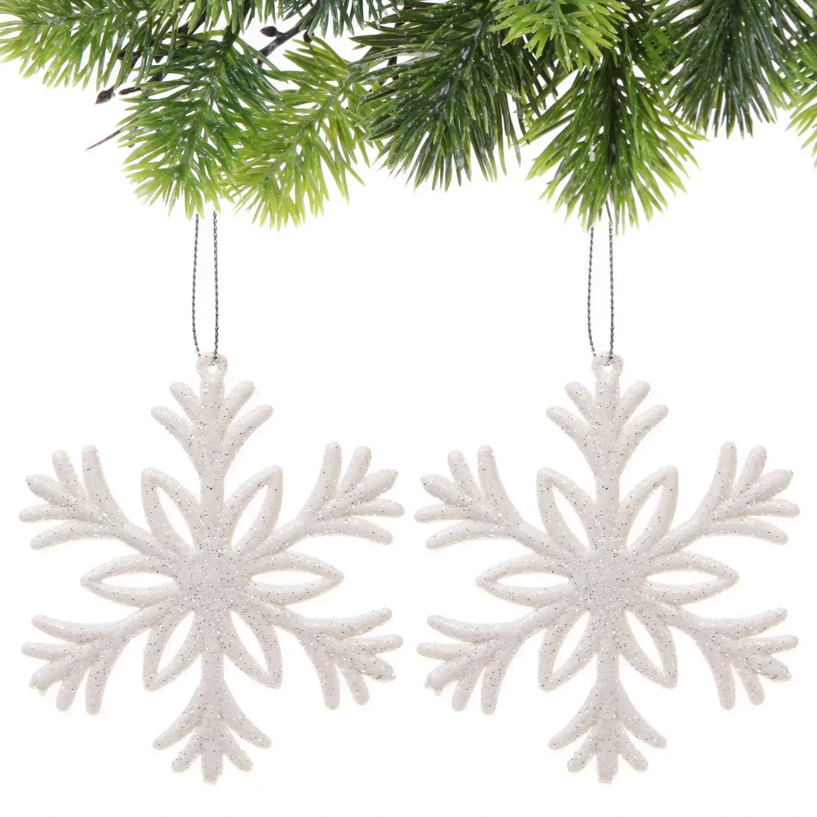 Подвески легко крепятся благодаря специальной петле, что позволяет вам без труда повесить их на ветки елки, гирлянды или другие элементы декора. Они идеально подходят для создания уютной атмосферы в вашем доме во время новогодних праздников. Эти снежинки подойдут как для домашнего использования, так и для оформления мероприятий.