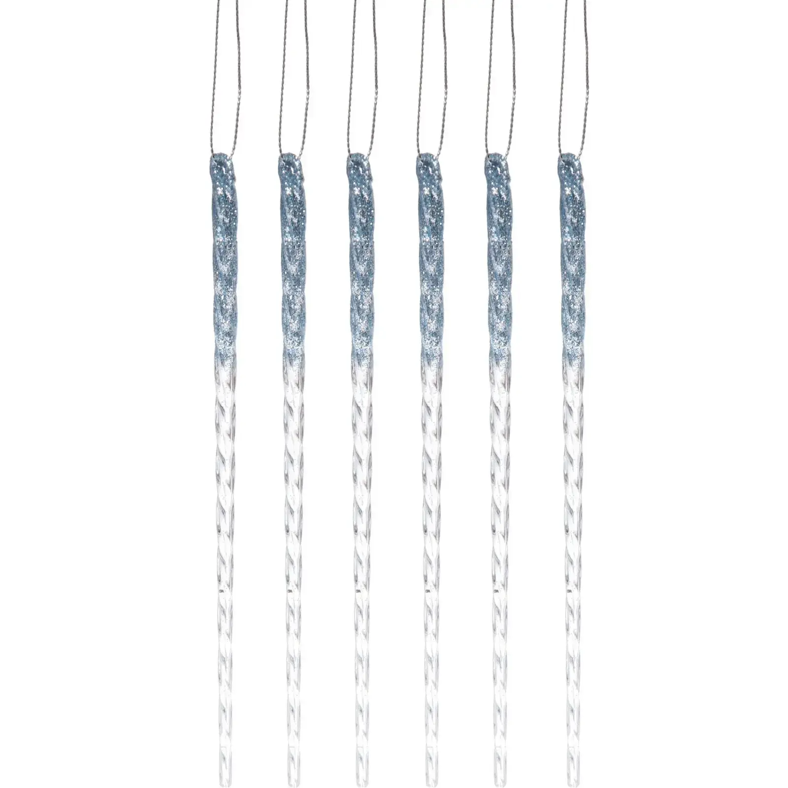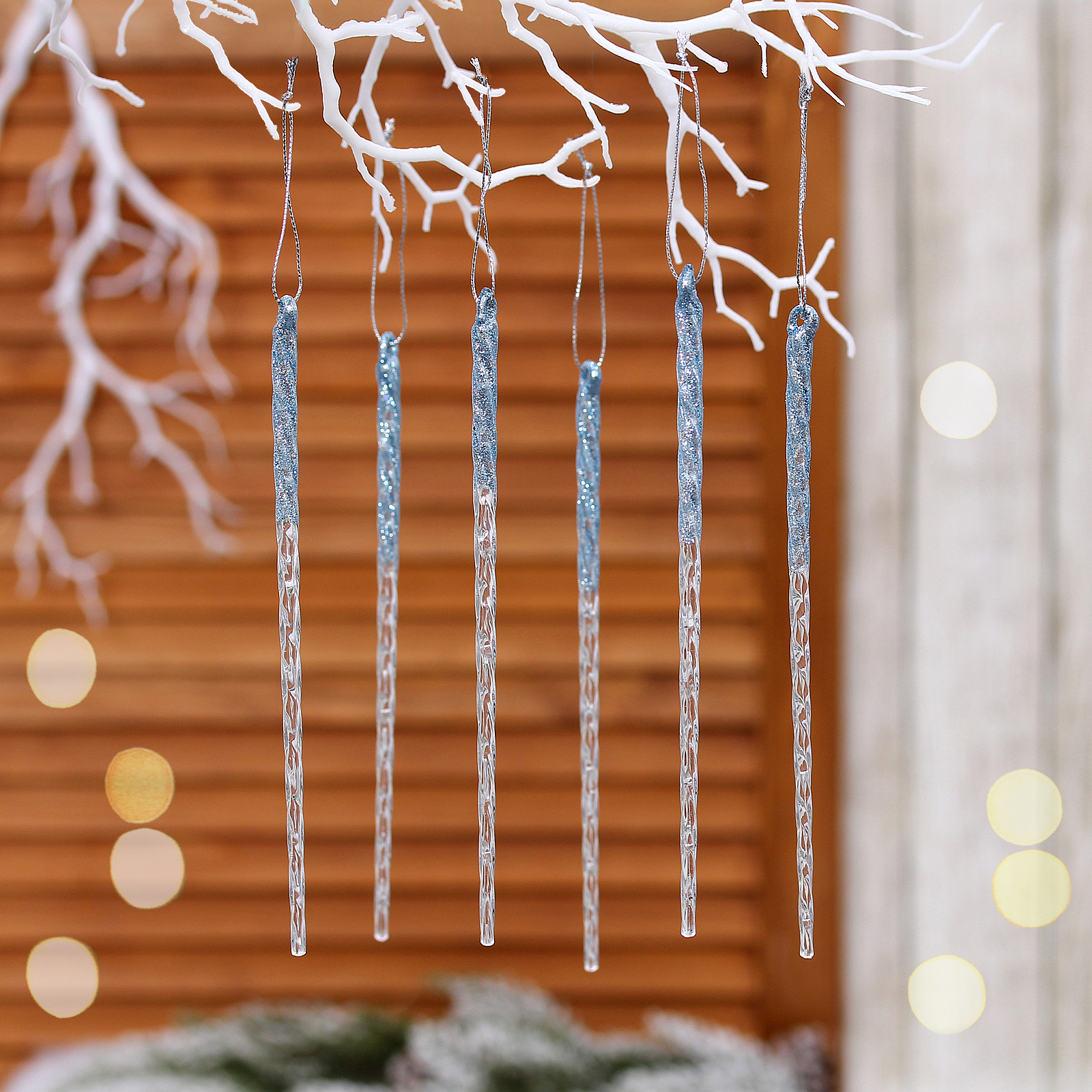 Каждая подвеска имеет длину 18 см и выполнена в голубом цвете с градиентом, переходящим в прозрачный. Блестки придают им дополнительный шарм и делают их заметными даже в тусклом освещении. Набор состоит из 6 штук, что позволяет вам создать полноценный декор для вашего праздника. Не упустите возможность сделать ваш Новый год незабываемым с подвеской «Снежный хрусталь»!
