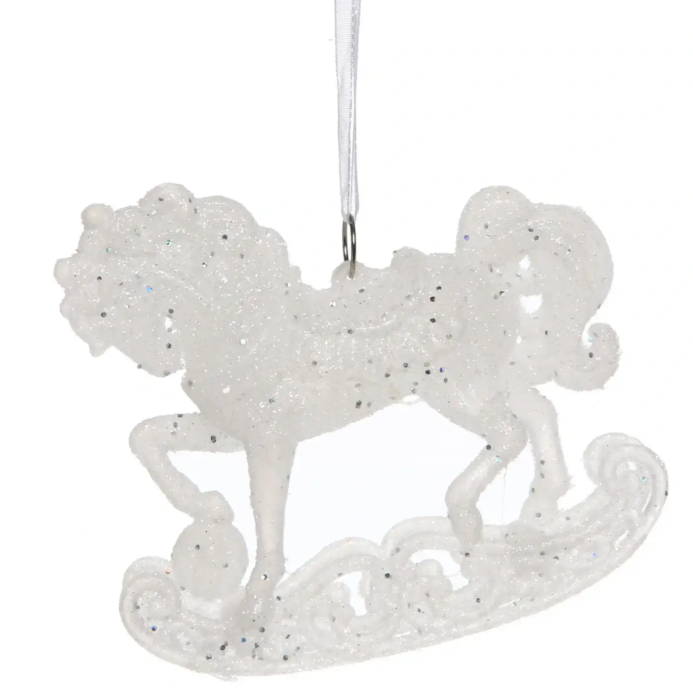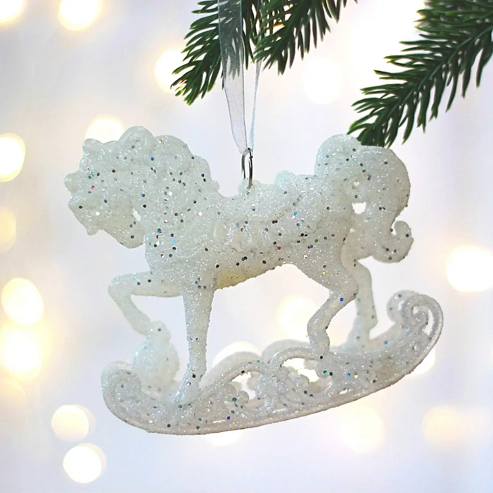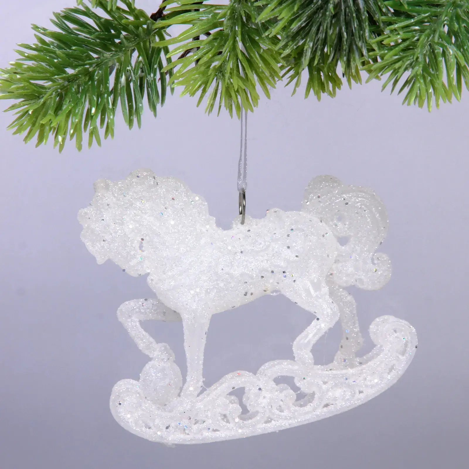 Создайте атмосферу праздника с помощью подвески «Стук копытца». Это изысканное украшение в виде лошадки, выполненное из прозрачного пластика, добавит волшебства в ваш интерьер. Белый цвет с блестящими элементами и стразами создает эффект мерцания, что делает его идеальным для новогодней елки или праздничного оформления.