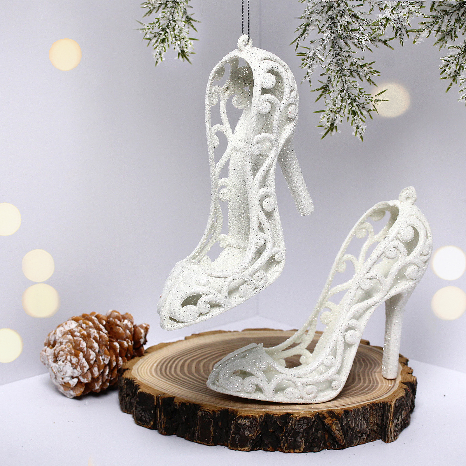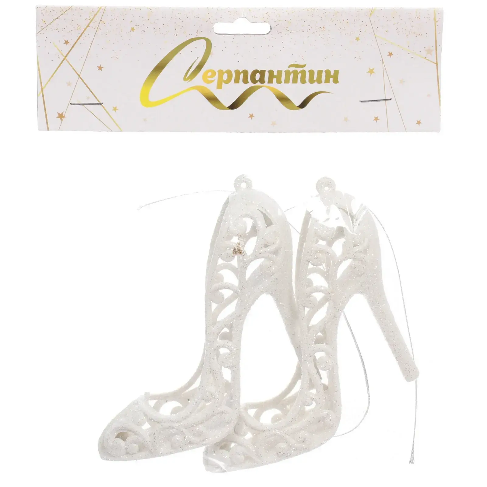 Подвеска «Туфли» — это идеальное решение для создания праздничной атмосферы в вашем доме. Эти изящные украшения, выполненные в белом цвете, добавят нотку стиля и элегантности в любое оформление. Благодаря высокому каблуку и ажурному дизайну, они станут настоящим акцентом вашего декора.