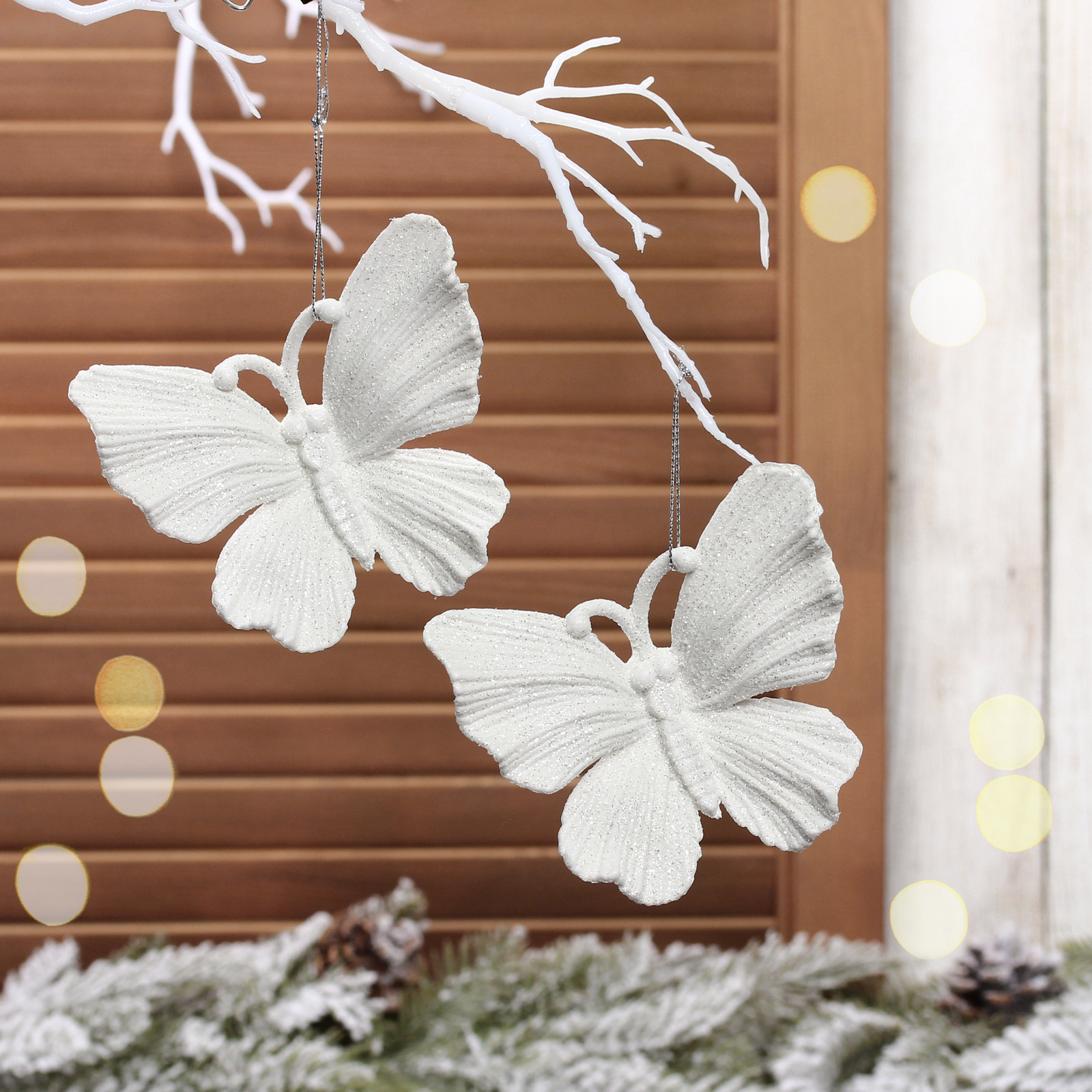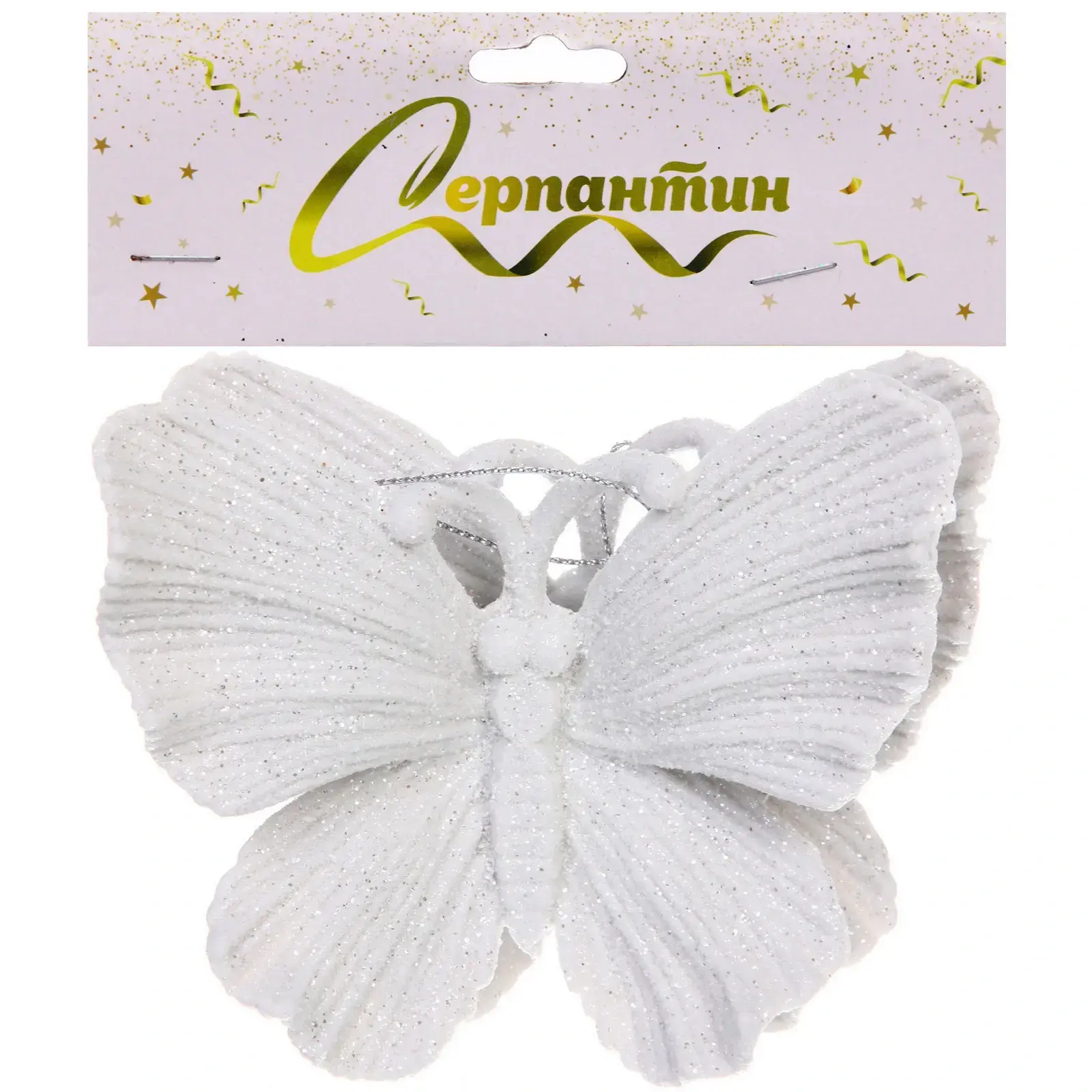 Подвеска декоративная 'Волшебная бабочка' 11см, белый/блестящий, набор 2 шт