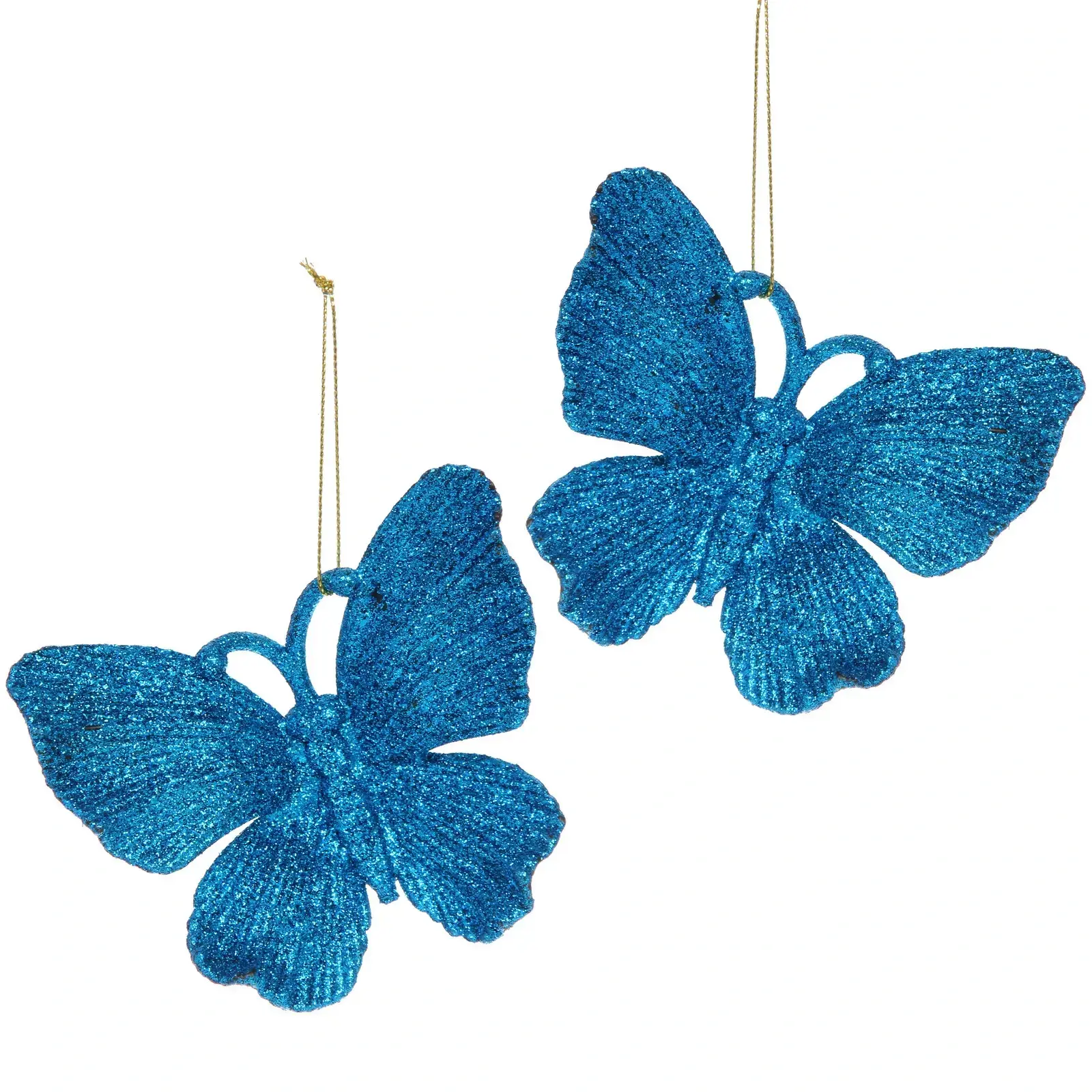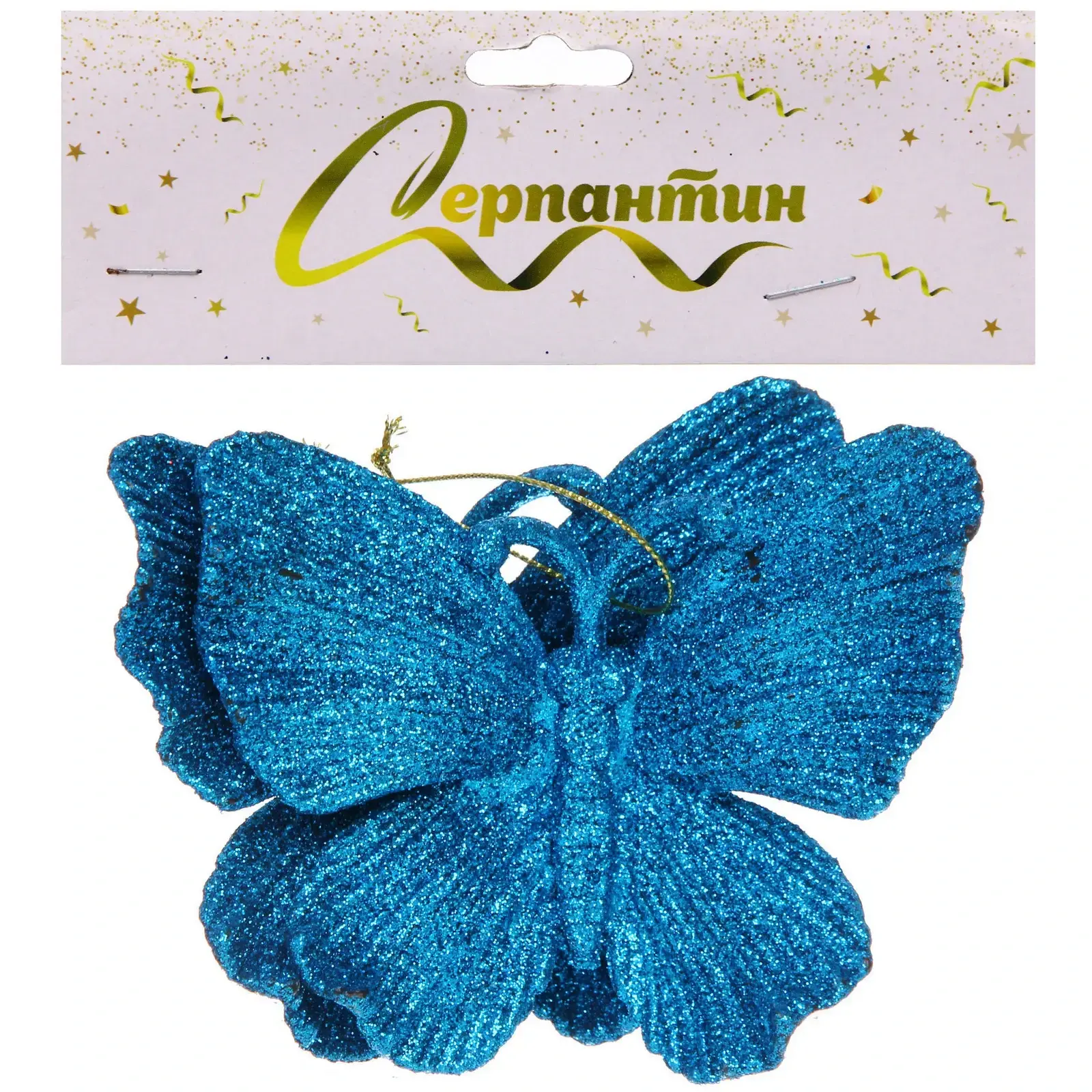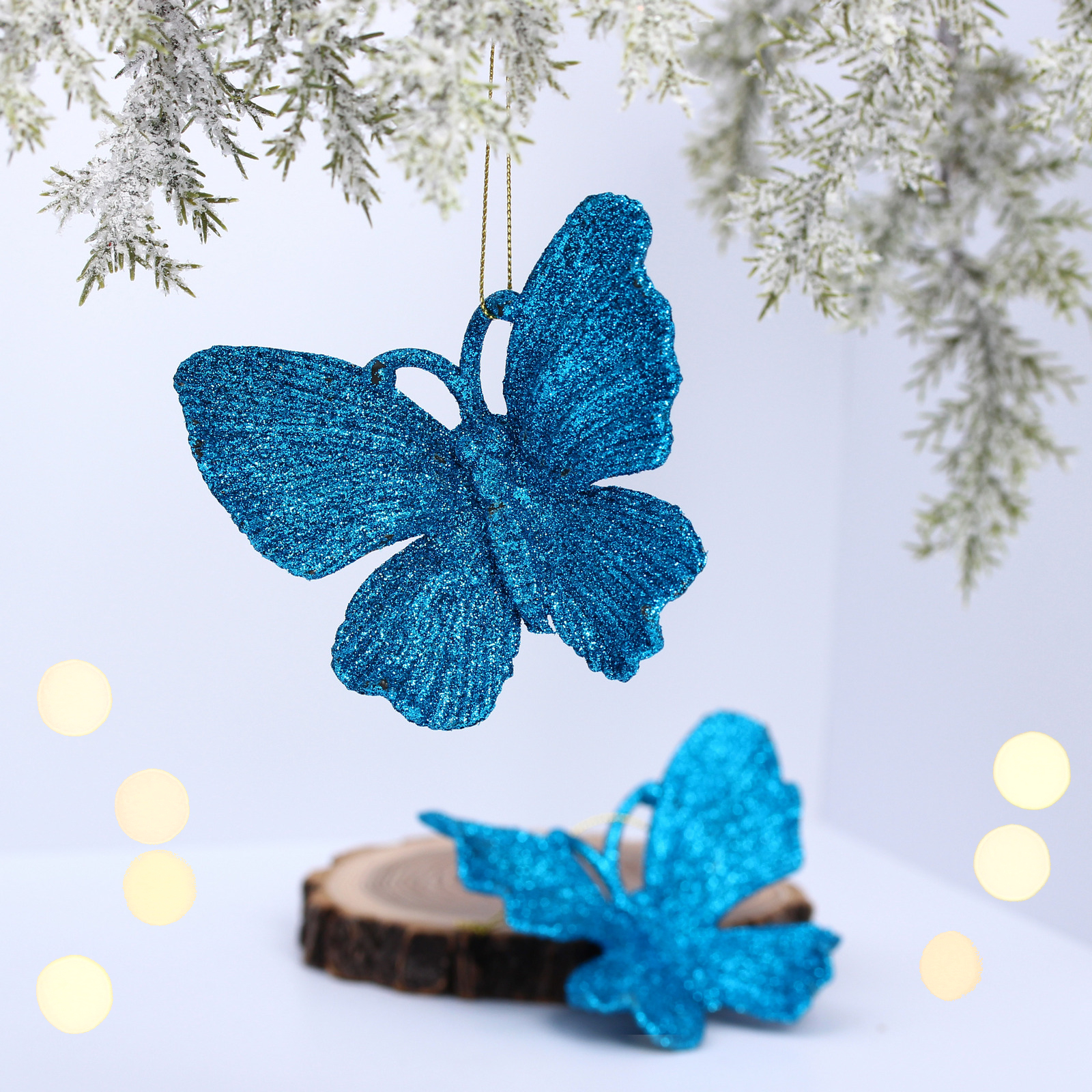 Подвеска декоративная 'Волшебная бабочка' 11см, голубой глиттер, набор 2 шт