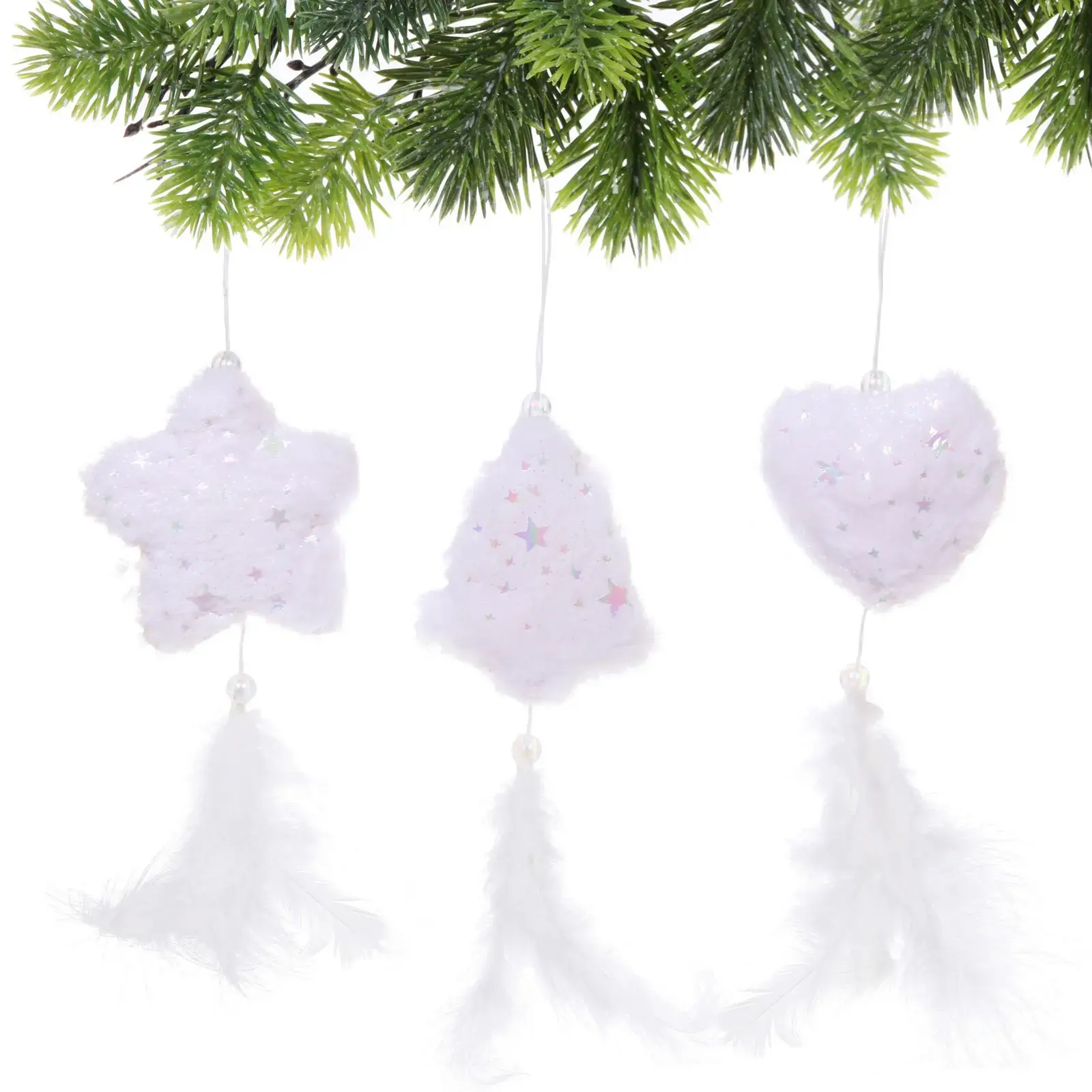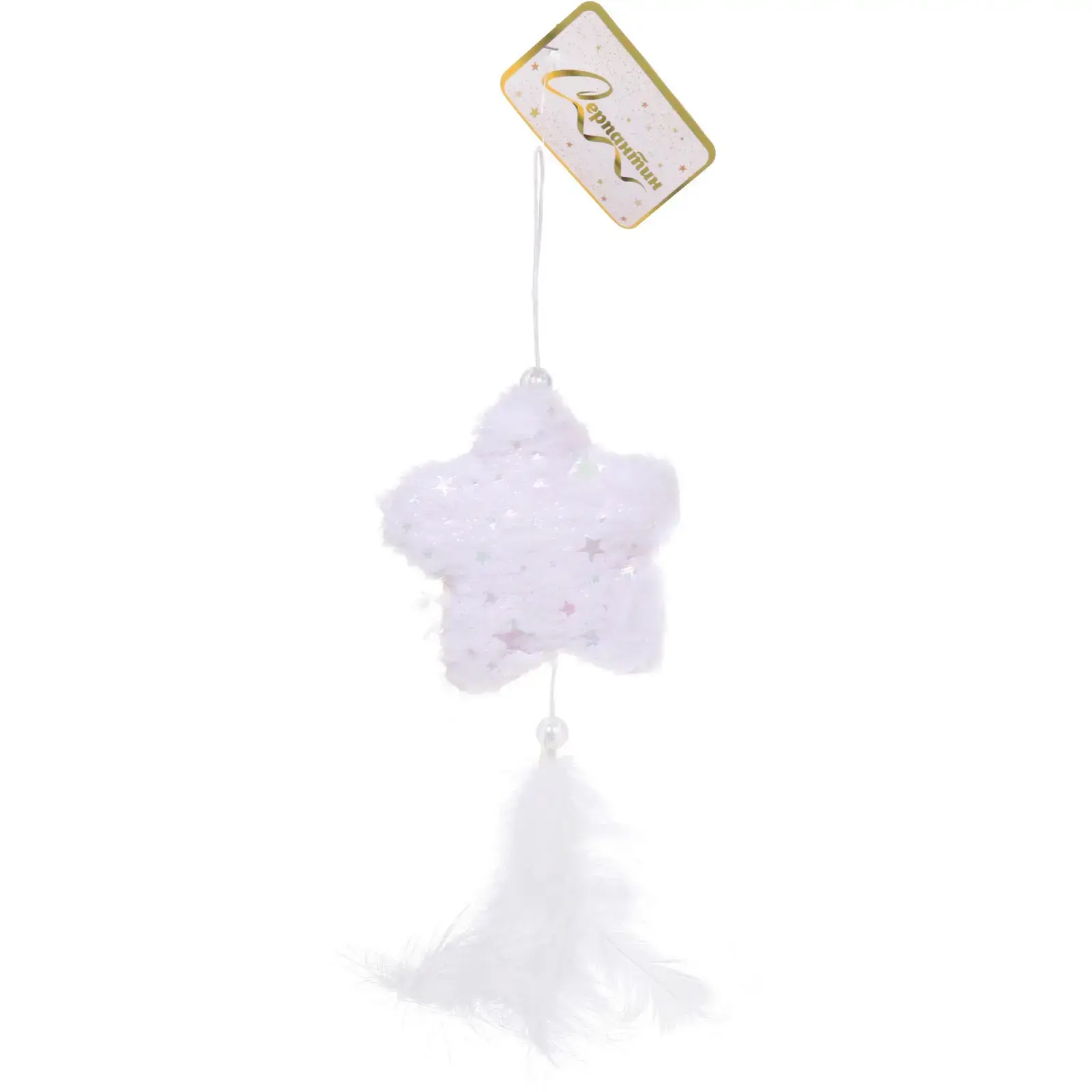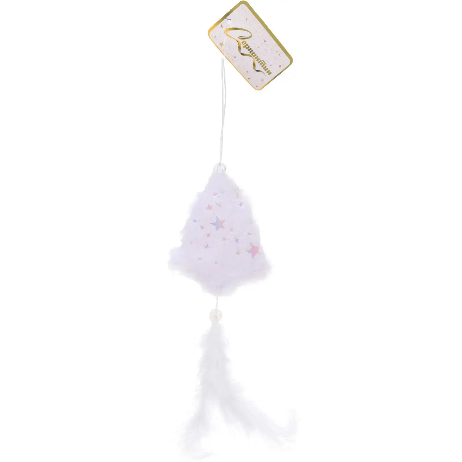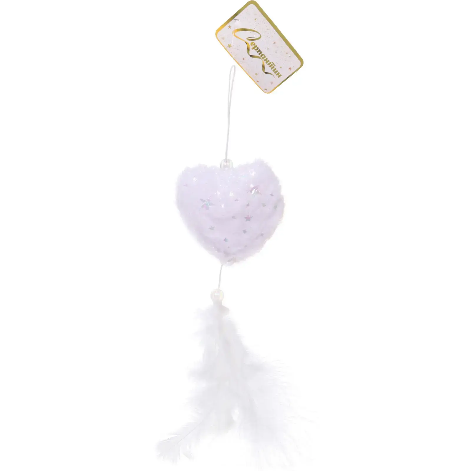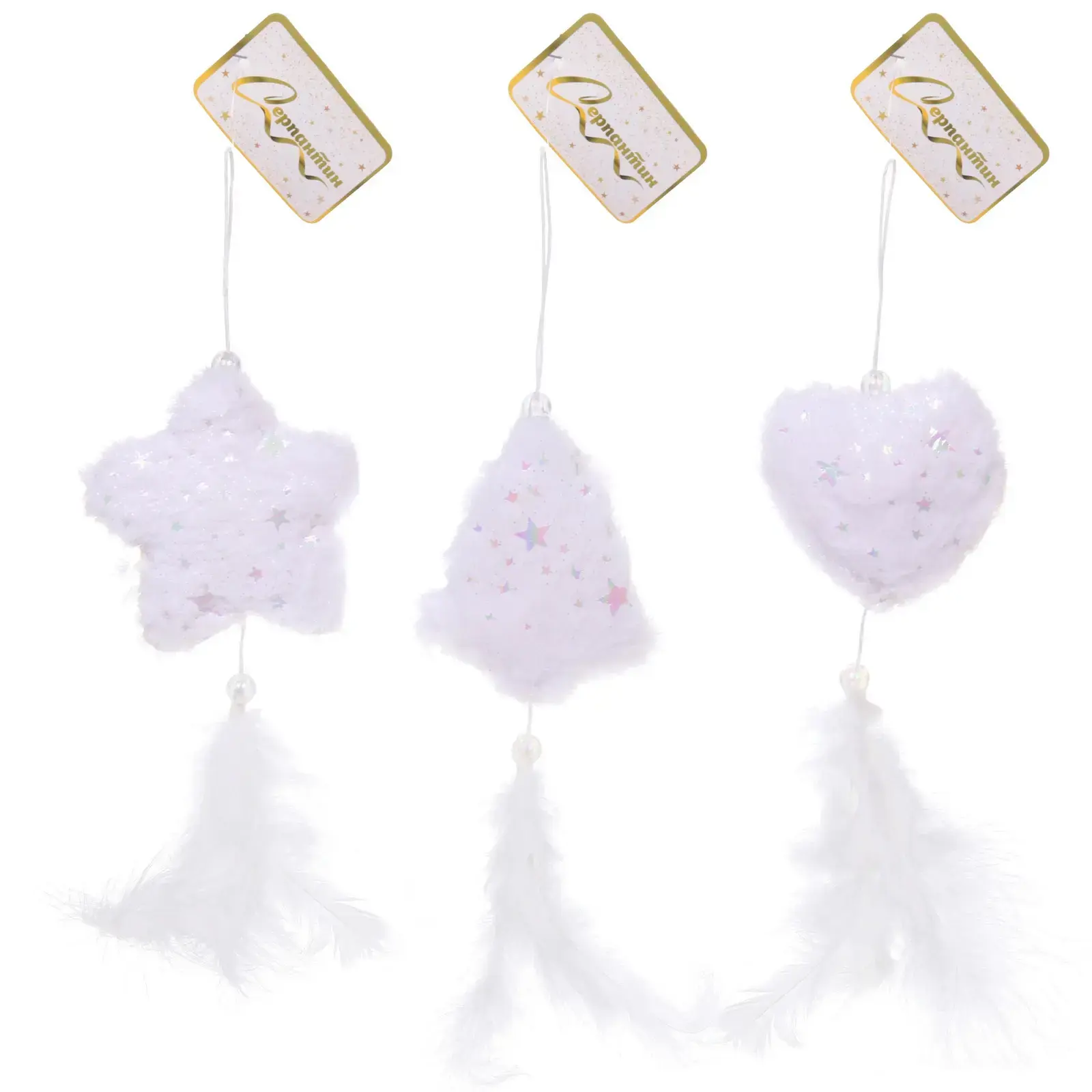 Эта изысканная подвеска станет идеальным дополнением вашего новогоднего декора. Выполненная в белом цвете, она добавит уют и волшебство в ваш интерьер. Каждая фигурка, будь то звезда, елка или сердце, украшена блестками и мягкими перьями, что придаёт им особую легкость и изящество.