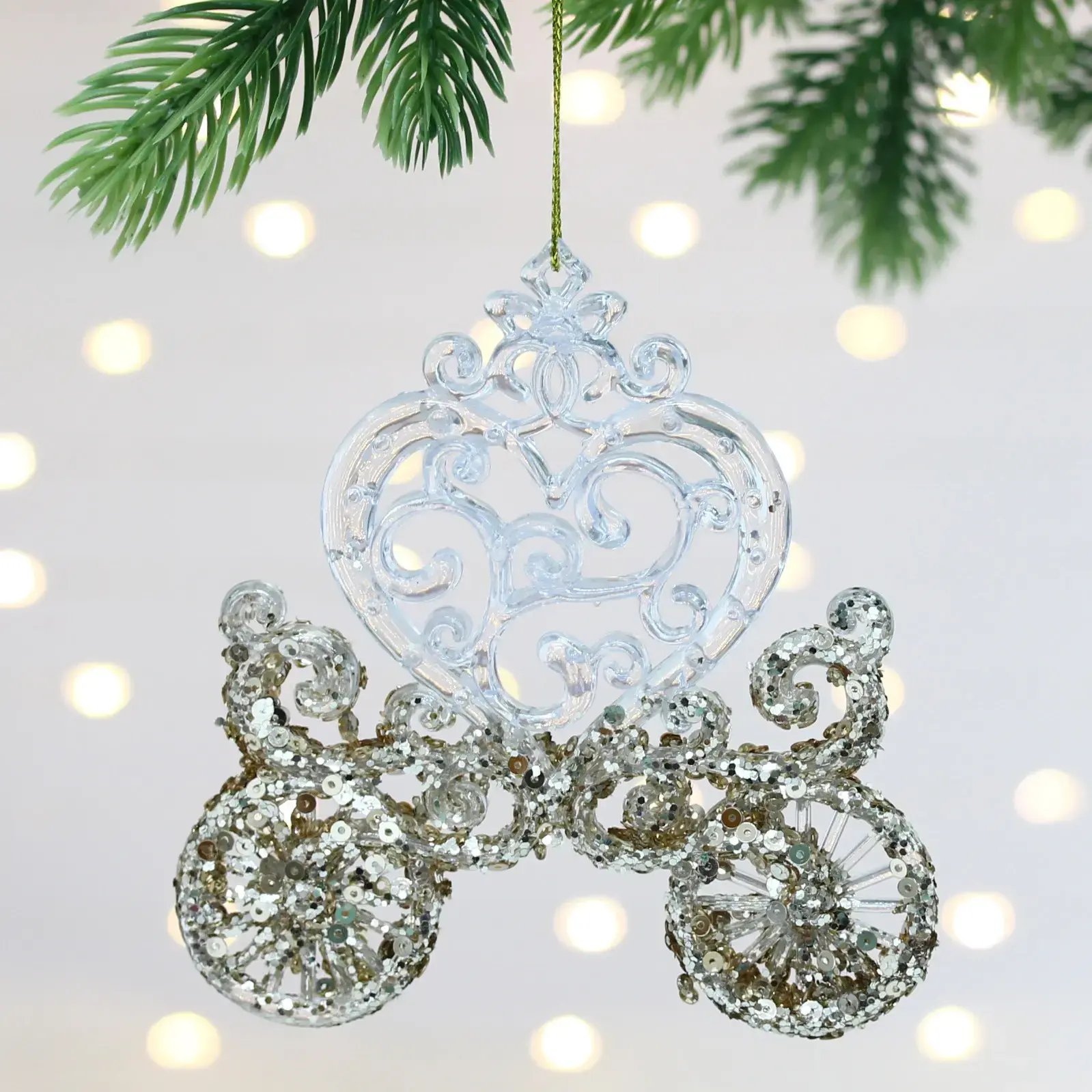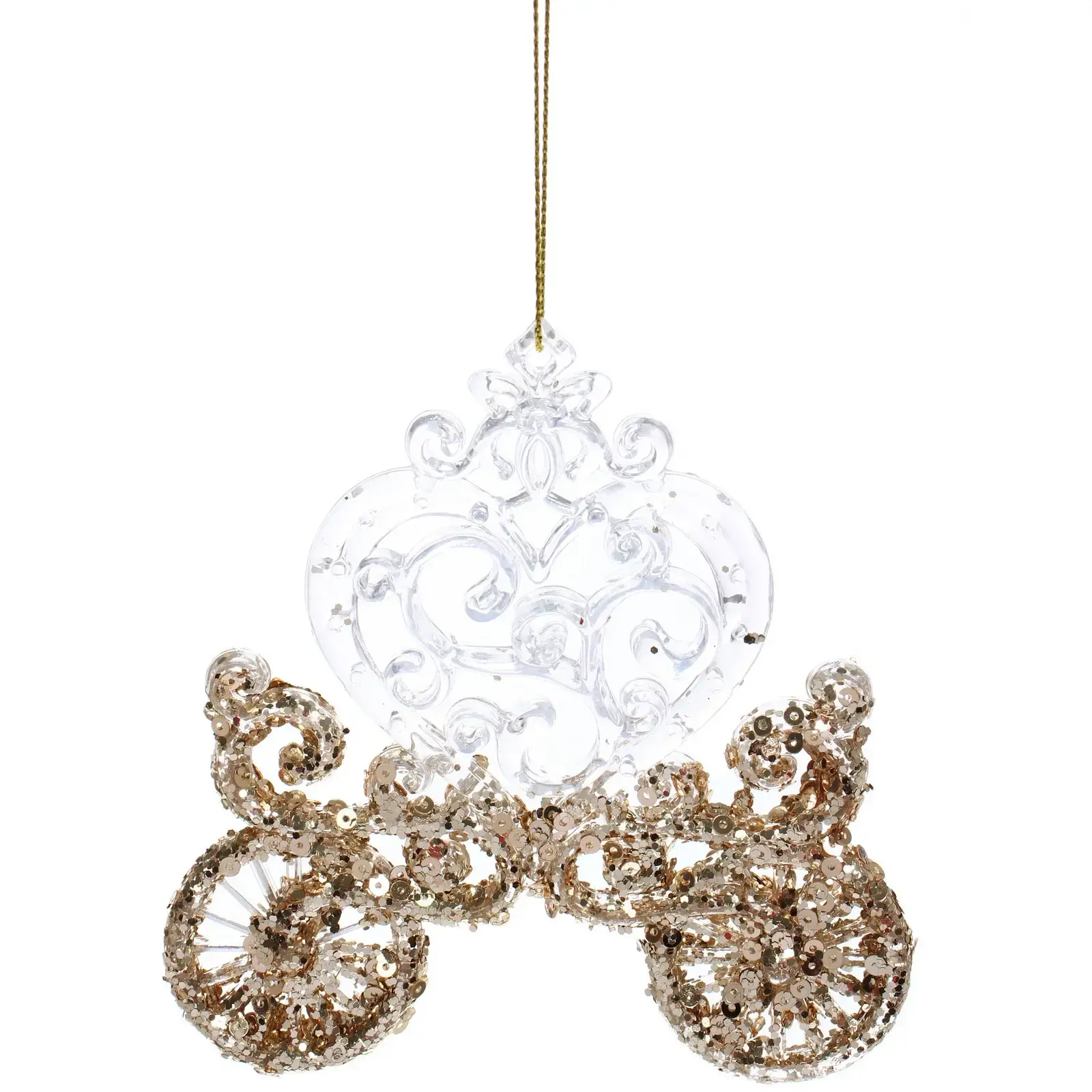 Подвеска 'Волшебная карета' 12см, белый/золотой блеск, пластик