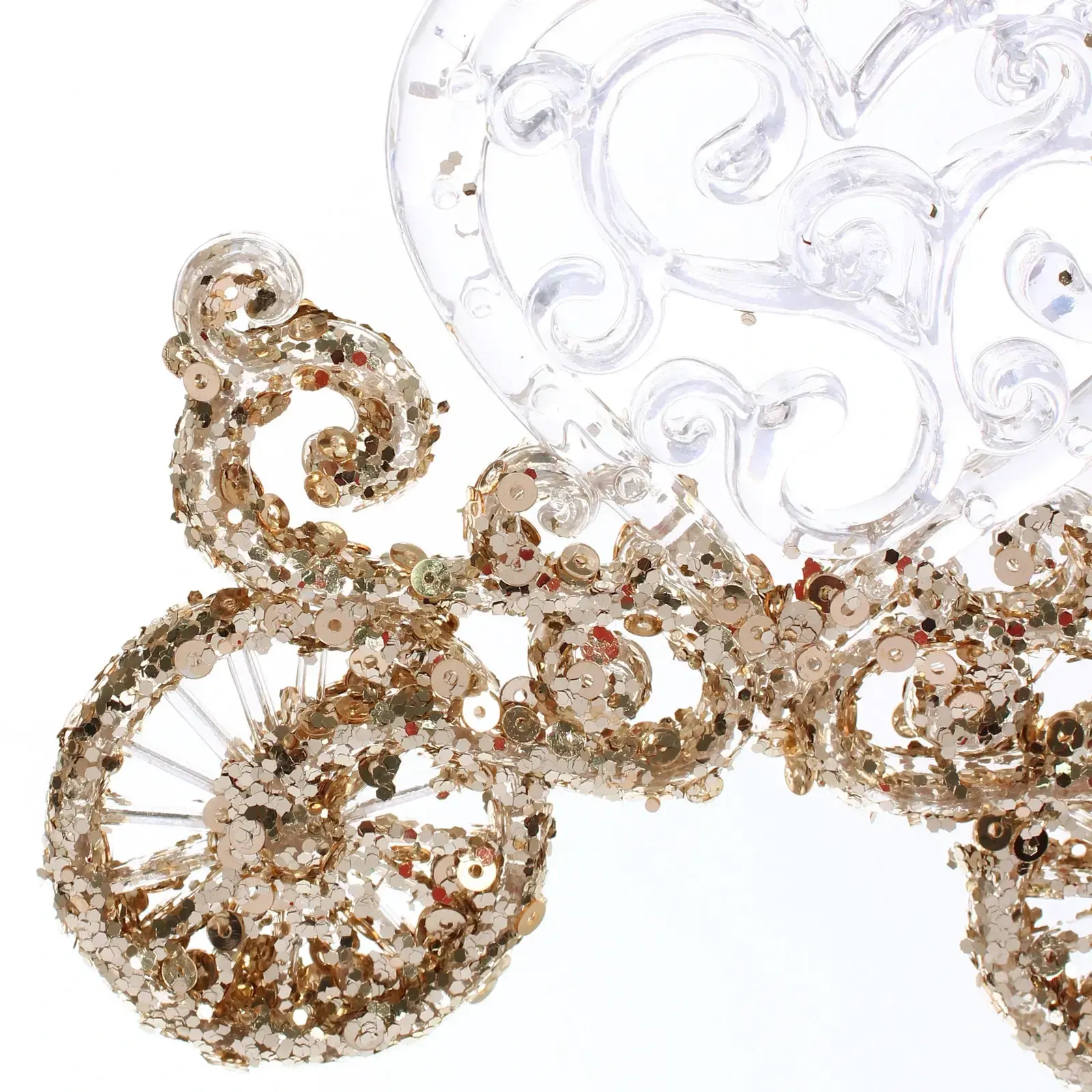Благодаря комбинации прозрачного пластика и золотых блесток, украшение создает потрясающий эффект переливающегося света. Каждая деталь продумана для максимального визуального воздействия.