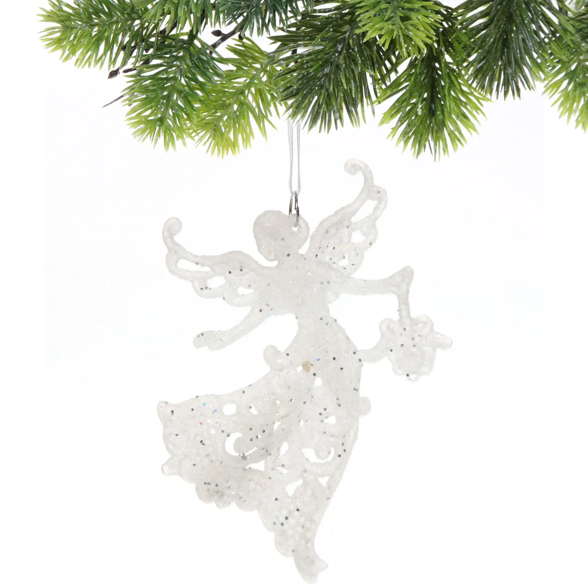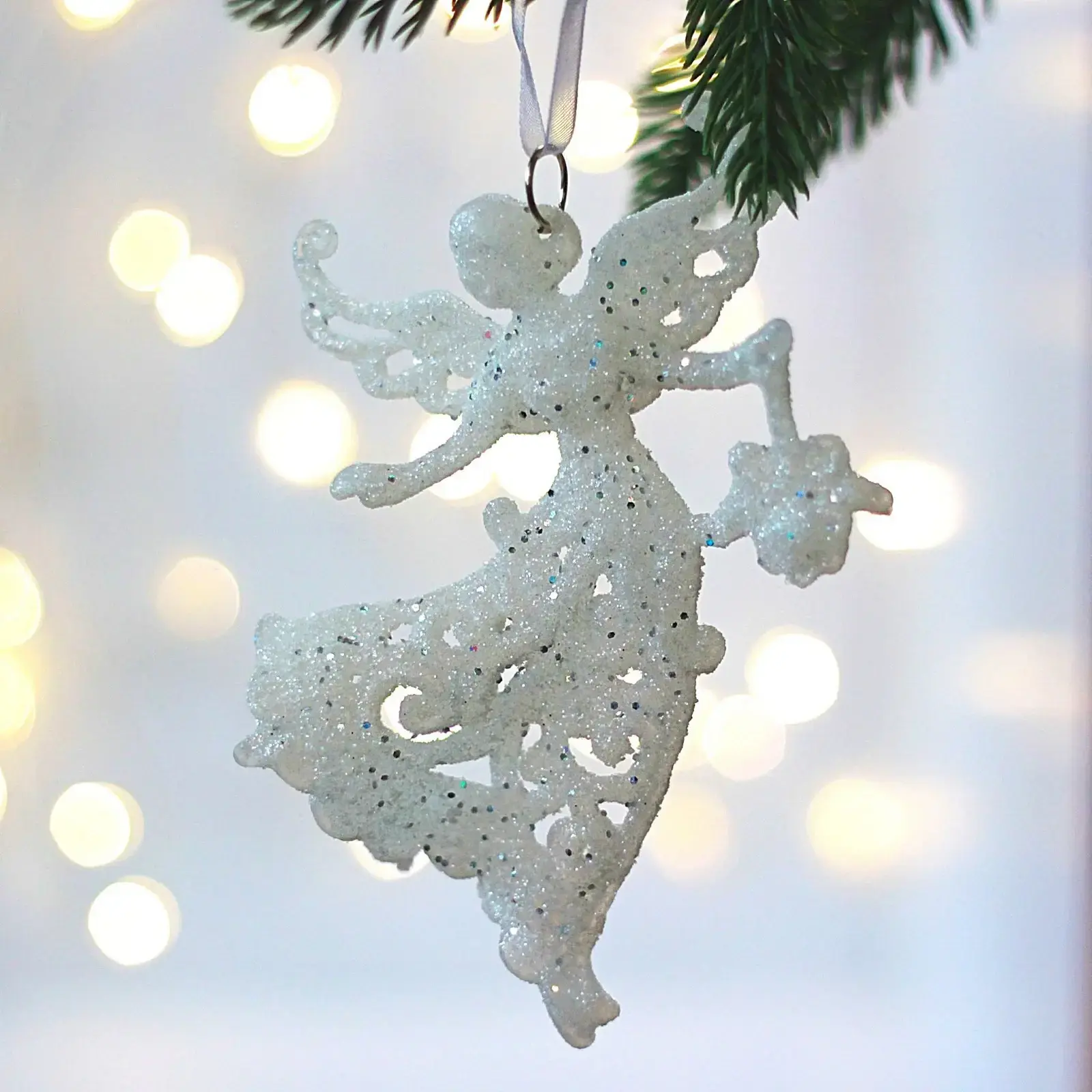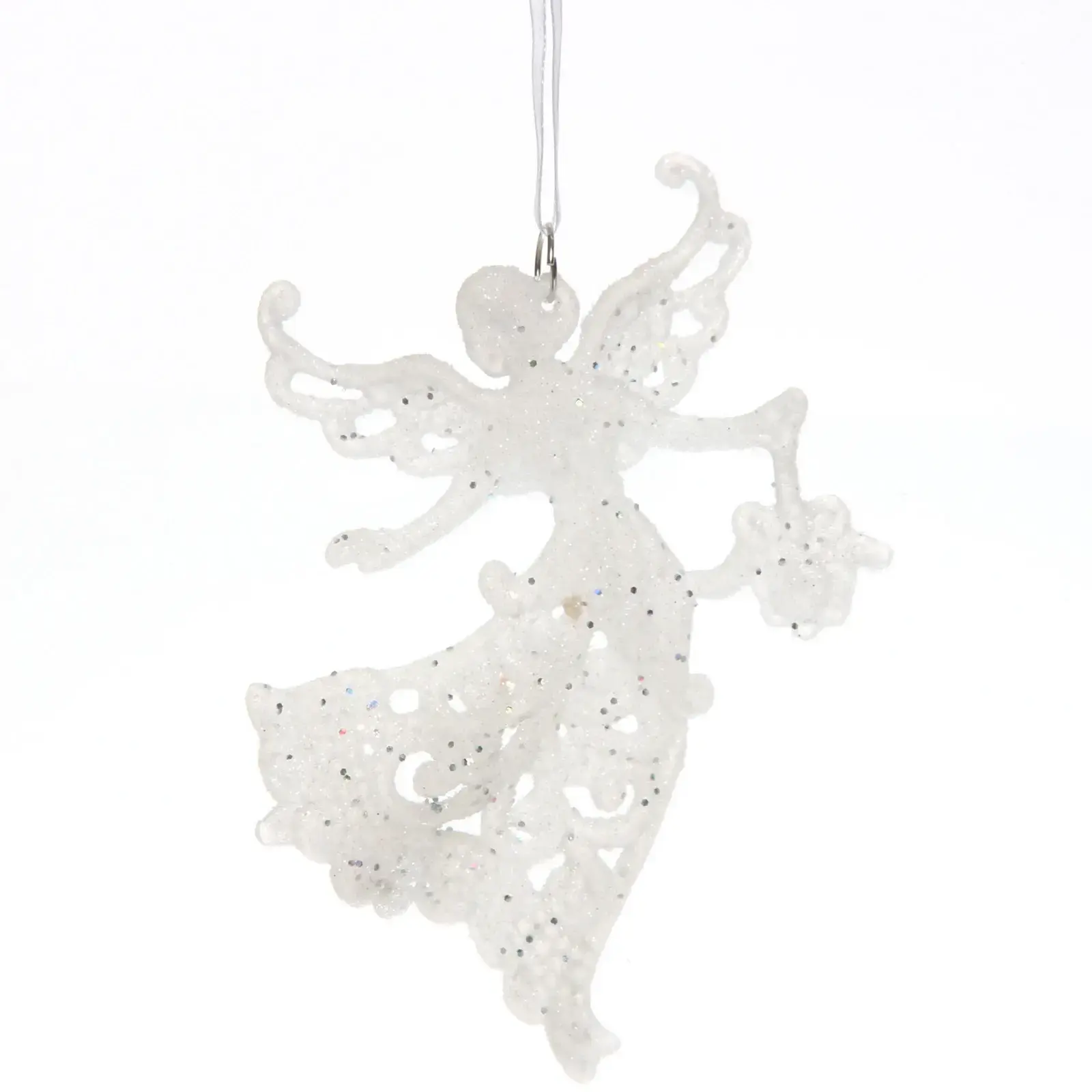 Эта изящная подвеска в виде ангела станет прекрасным украшением для вашего новогоднего интерьера. Выполненная из белого прозрачного материала с блестками, она добавит нотку волшебства и уюта в любое пространство. Подвеска идеально подходит для декорирования рождественской елки или создания праздничной атмосферы в вашем доме.