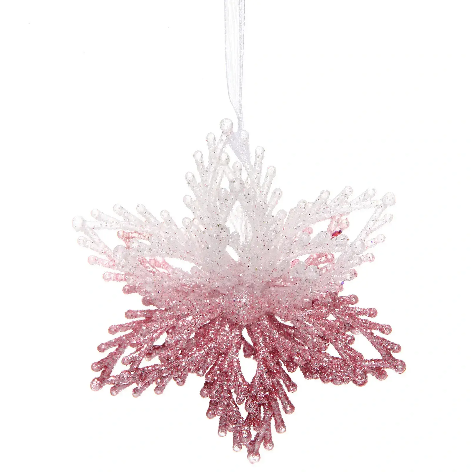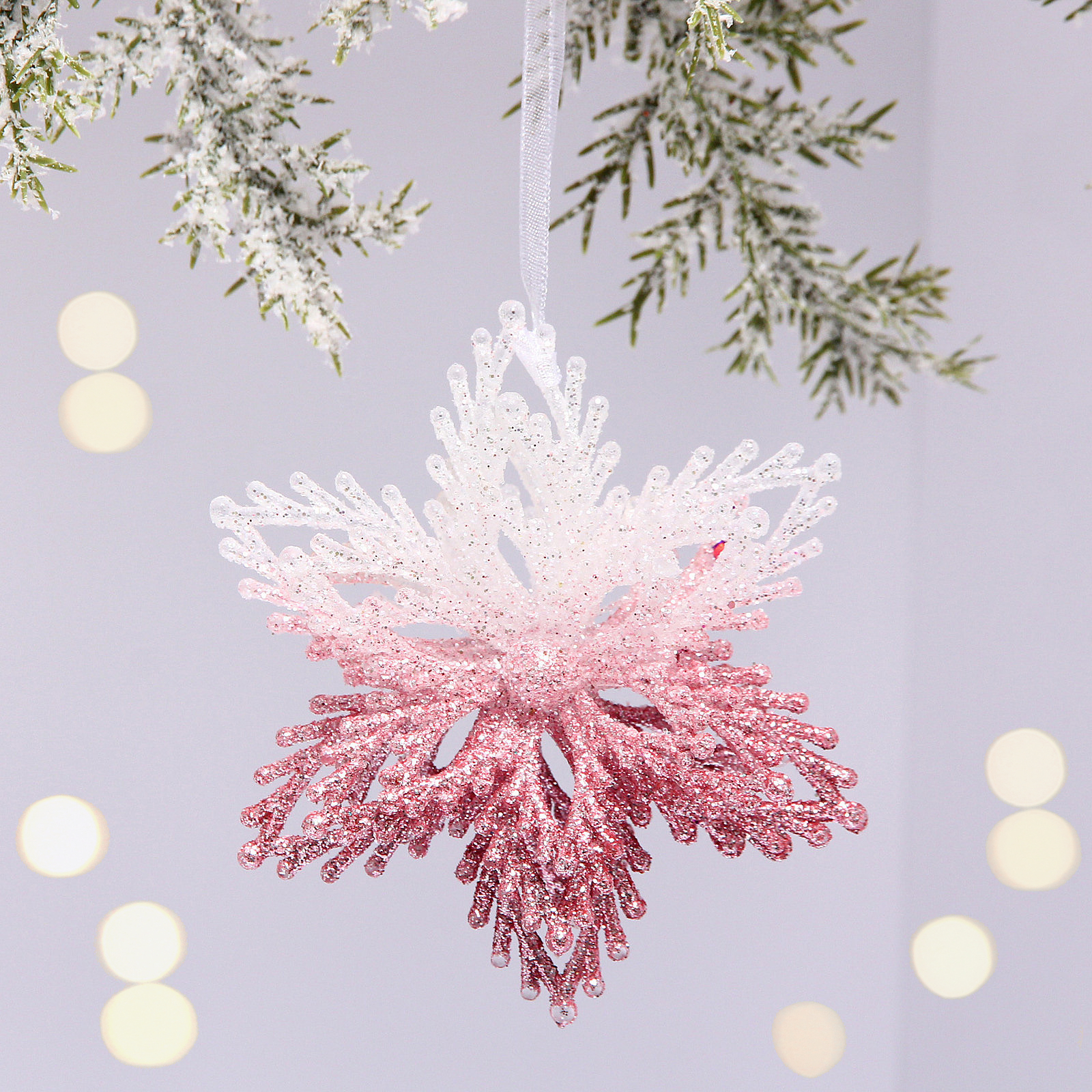 Подвеска «Волшебная снежинка» станет идеальным украшением для создания праздничной атмосферы. Благодаря переливающемуся глиттерному покрытию и нежному градиенту от белого к розовому, она придаст вашему дому особое очарование новогодней сказки.