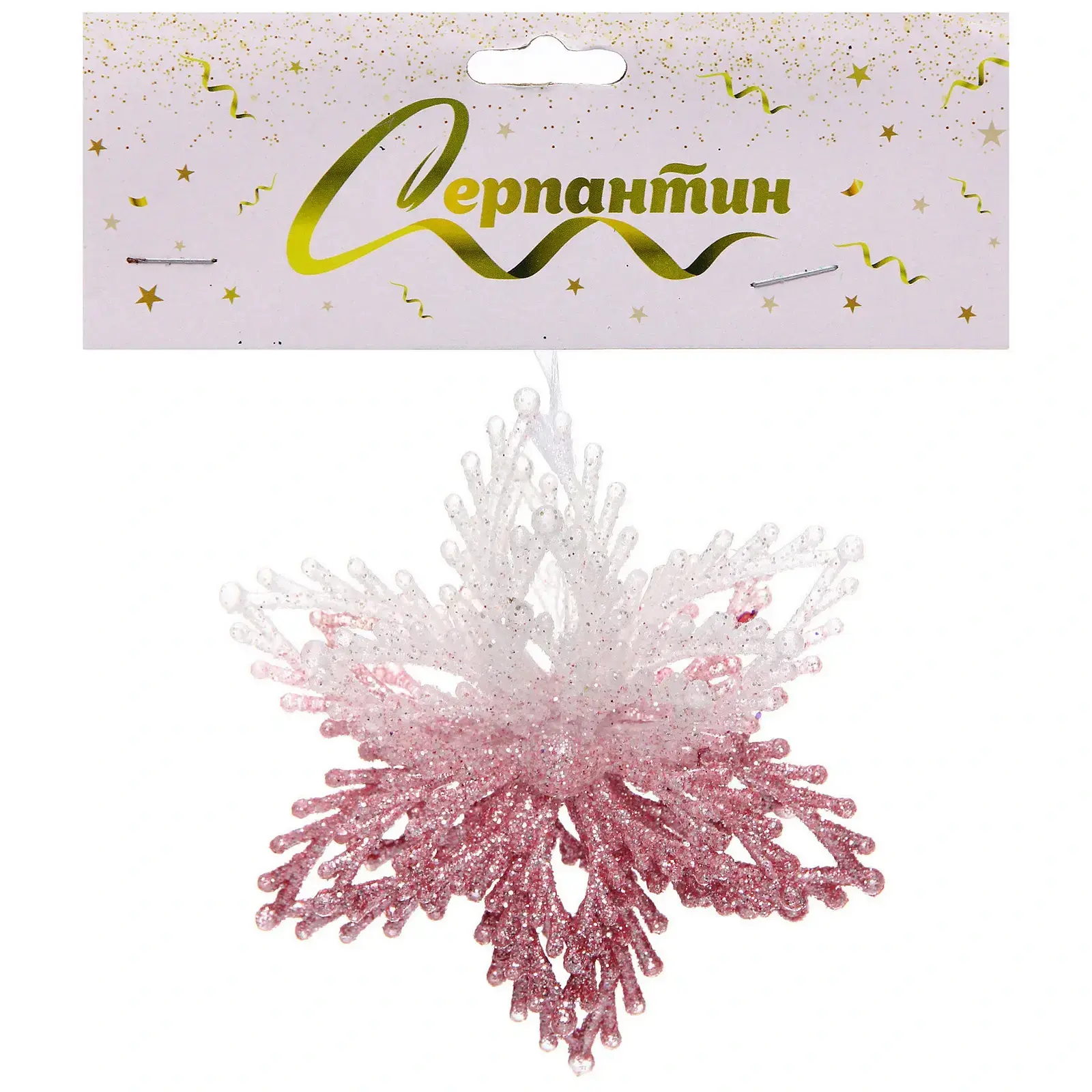 Подвеска «Волшебная снежинка» 10см, белый/розовый, глиттер, пластик