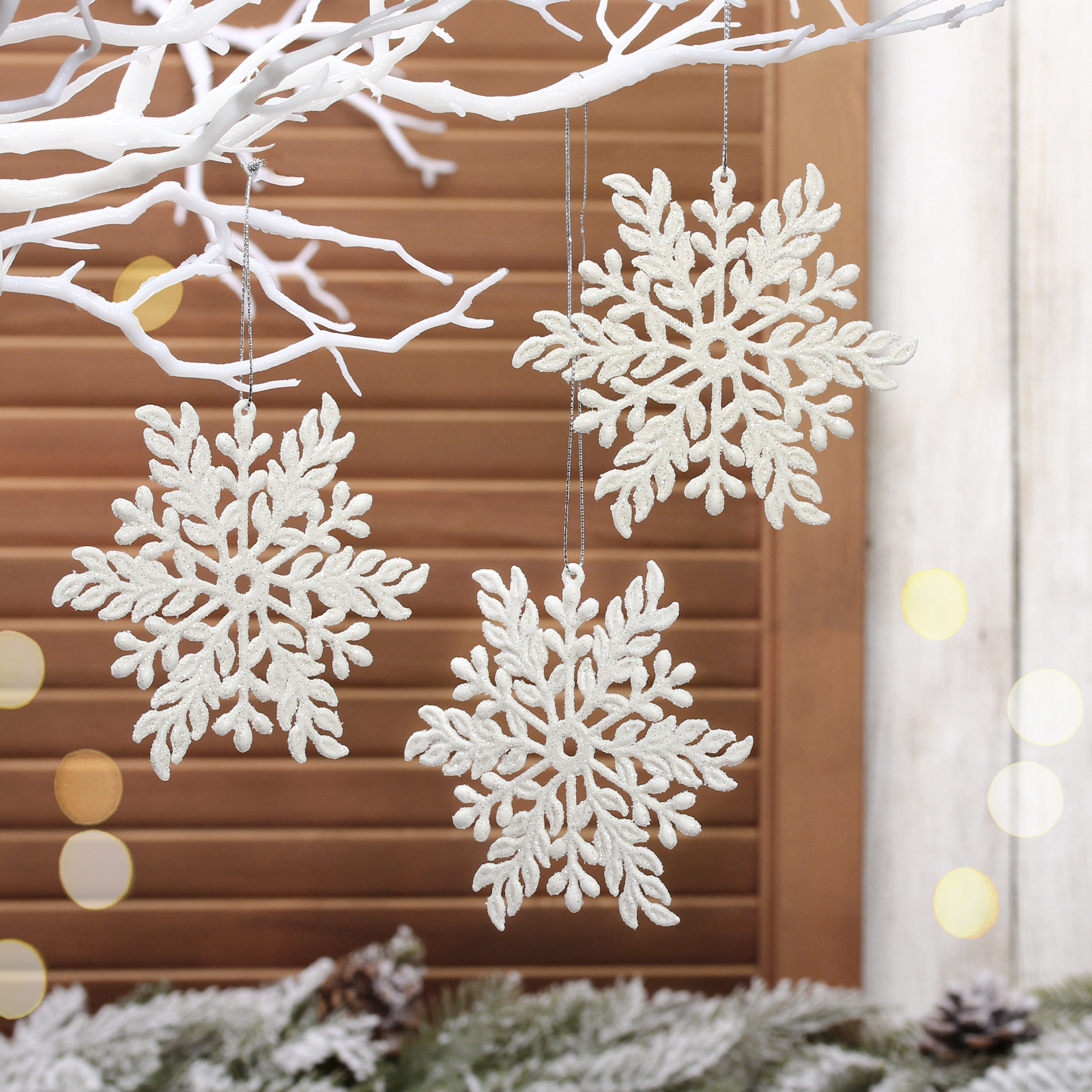 Создайте неповторимую атмосферу новогоднего волшебства с набором из трех декоративных подвесок 'Волшебная снежинка'. Идеальное решение для быстрого и эффектного праздничного декора.