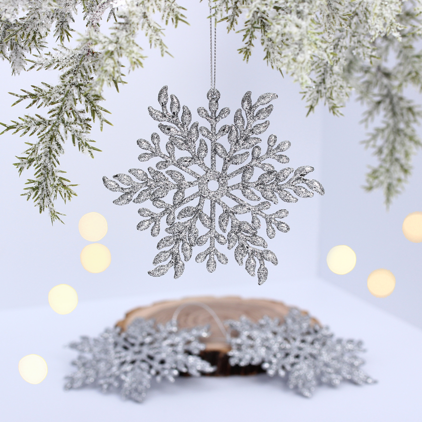 Каждая снежинка диаметром 11.5 см повторяет природную геометрию ледяных кристаллов. Благодаря плоской форме легко хранить после праздников — просто сложите стопкой в коробку. Глянцевая поверхность устойчива к выцветанию и сохраняет блеск в течение всего сезона.