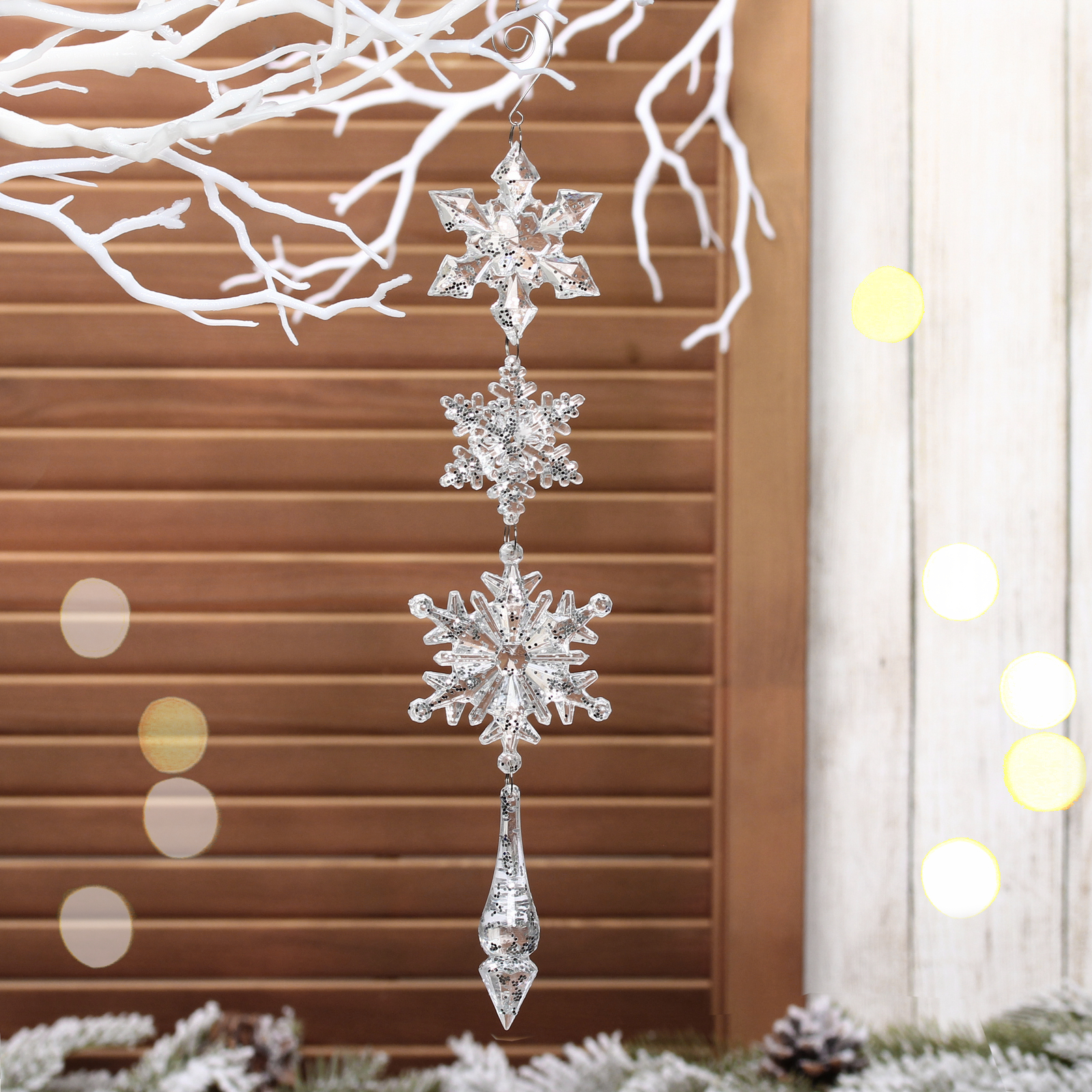 Создайте неповторимую праздничную атмосферу в доме благодаря изысканной подвеске 'Волшебная снежинка'. Её прозрачные грани переливаются в свете ламп, наполняя комнату волшебным мерцанием.