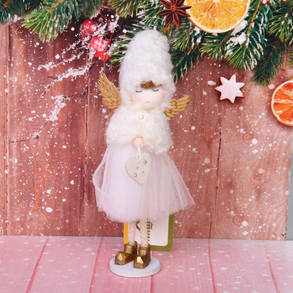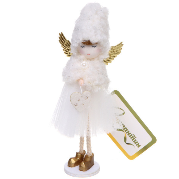 Фигурка выполнена из текстиля и пластика, что делает ее легкой и удобной для перемещения. Белый цвет и воздушные элементы дизайна создают ощущение легкости и невесомости. Она станет отличным дополнением к вашему новогоднему декору или просто уютным элементом в интерьере.