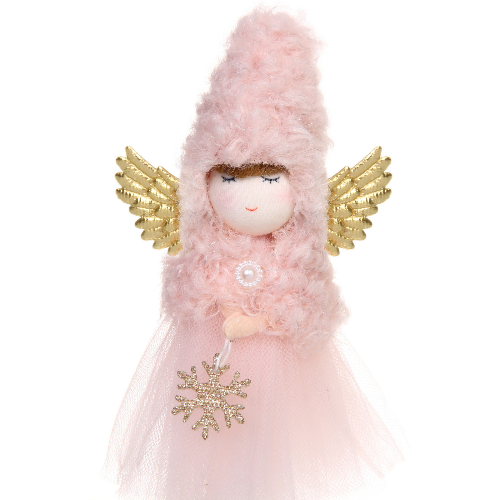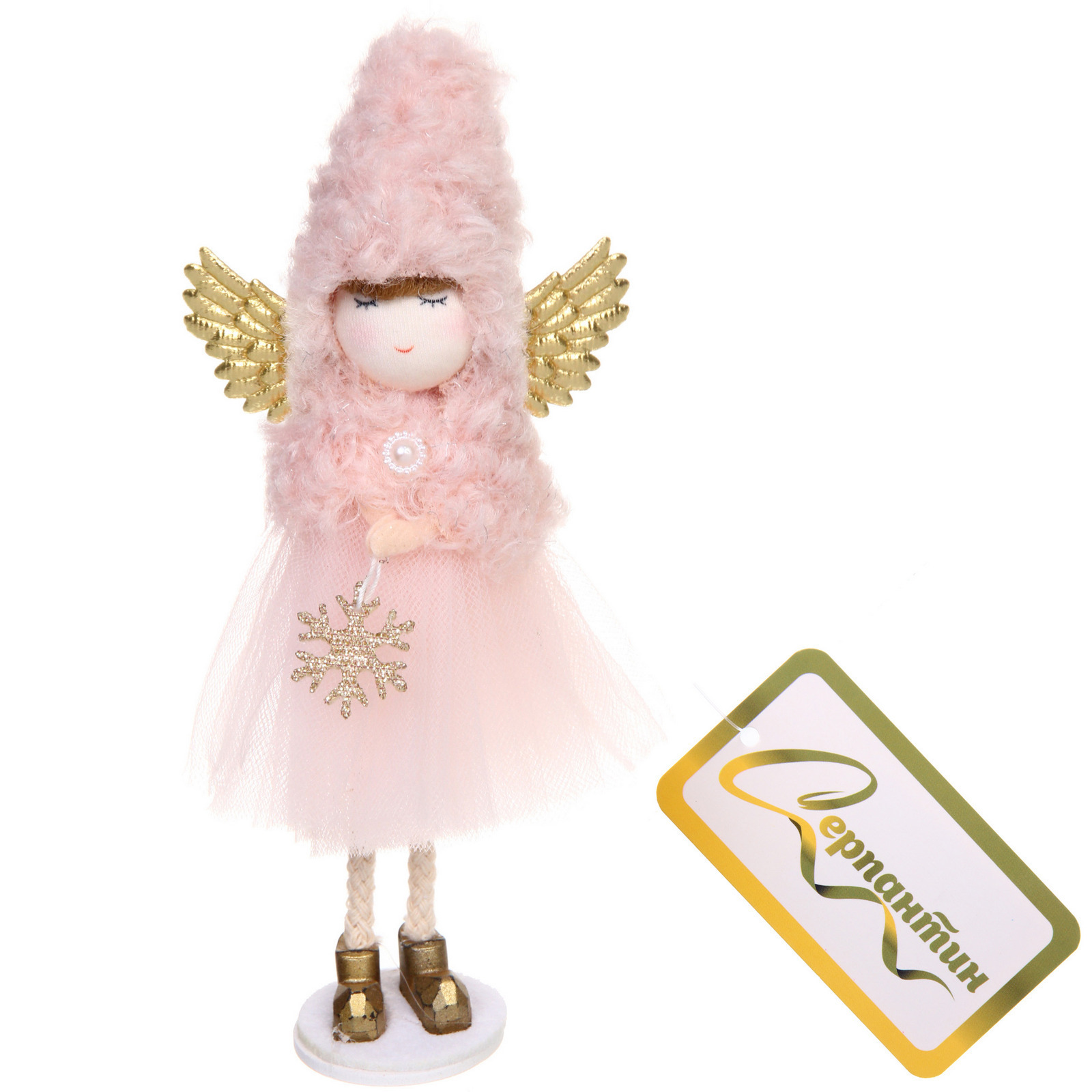 Выбирая фигурку «Волшебное платье», вы получаете не просто игрушку, а стильный элемент декора, который подчеркнёт ваш вкус и создаст уют. Мягкая текстура и пушистый верх делают её приятной на ощупь, а золотые ангельские крылья добавляют изысканности. Кукла держит в руках снежинку, что делает её ещё более привлекательной и символичной для зимних праздников.