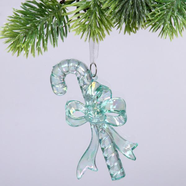 Элегантное украшение в форме конфетного тростника создаст неповторимую атмосферу зимних праздников. Материал — прозрачное стекло, которое красиво переливается в лучах гирлянд, добавляя блеска и уюта интерьеру. Благодаря утонченной форме, аккуратной петле для подвешивания и декоративному банту, подвеска гармонично смотрится как на классической, так и на современной елке.