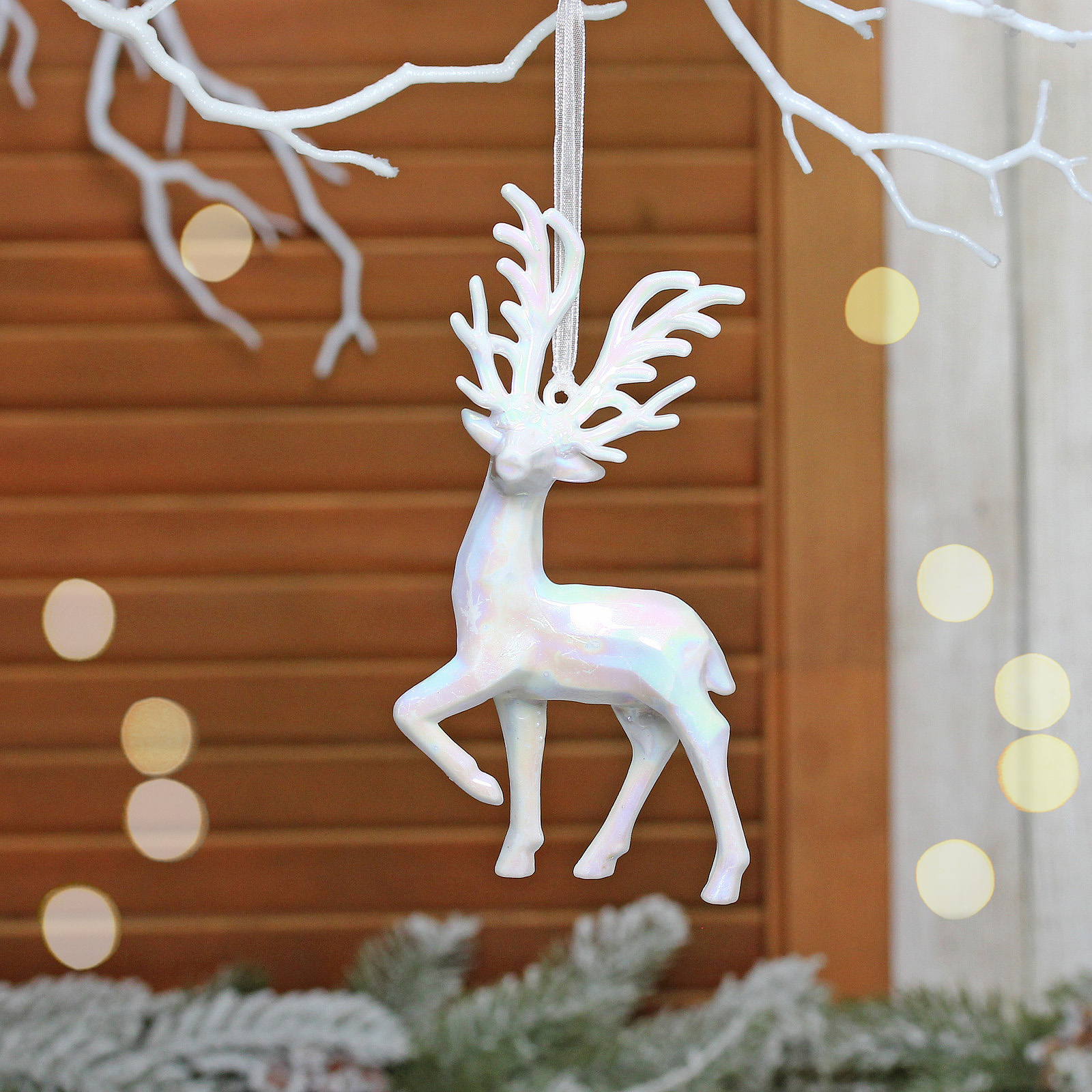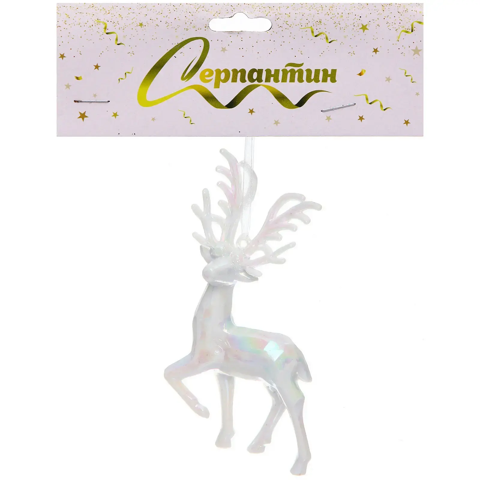 Подвеска новогодняя "Волшебный олень" 14*7см, жемчужный цвет, пластик