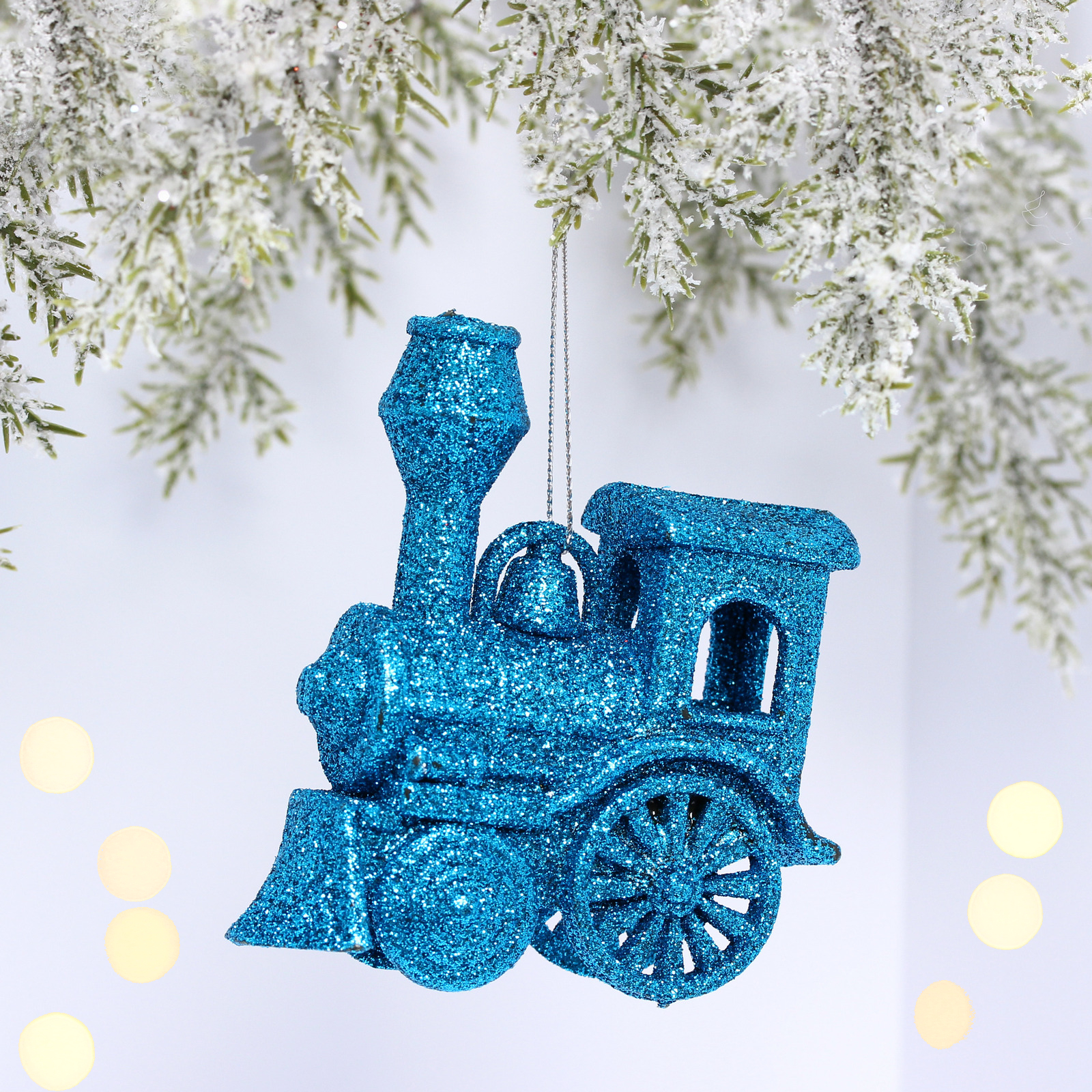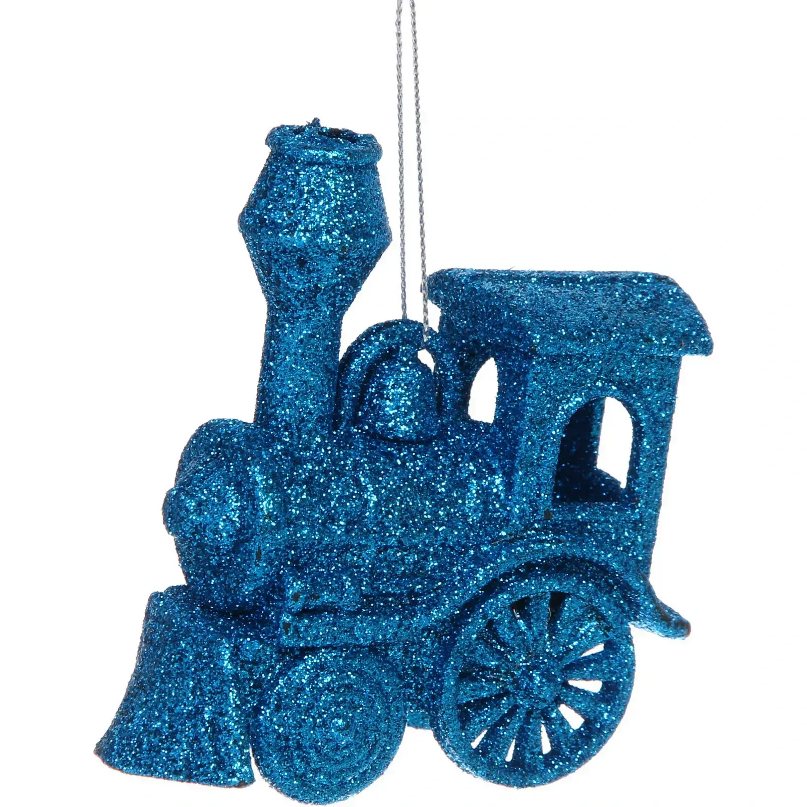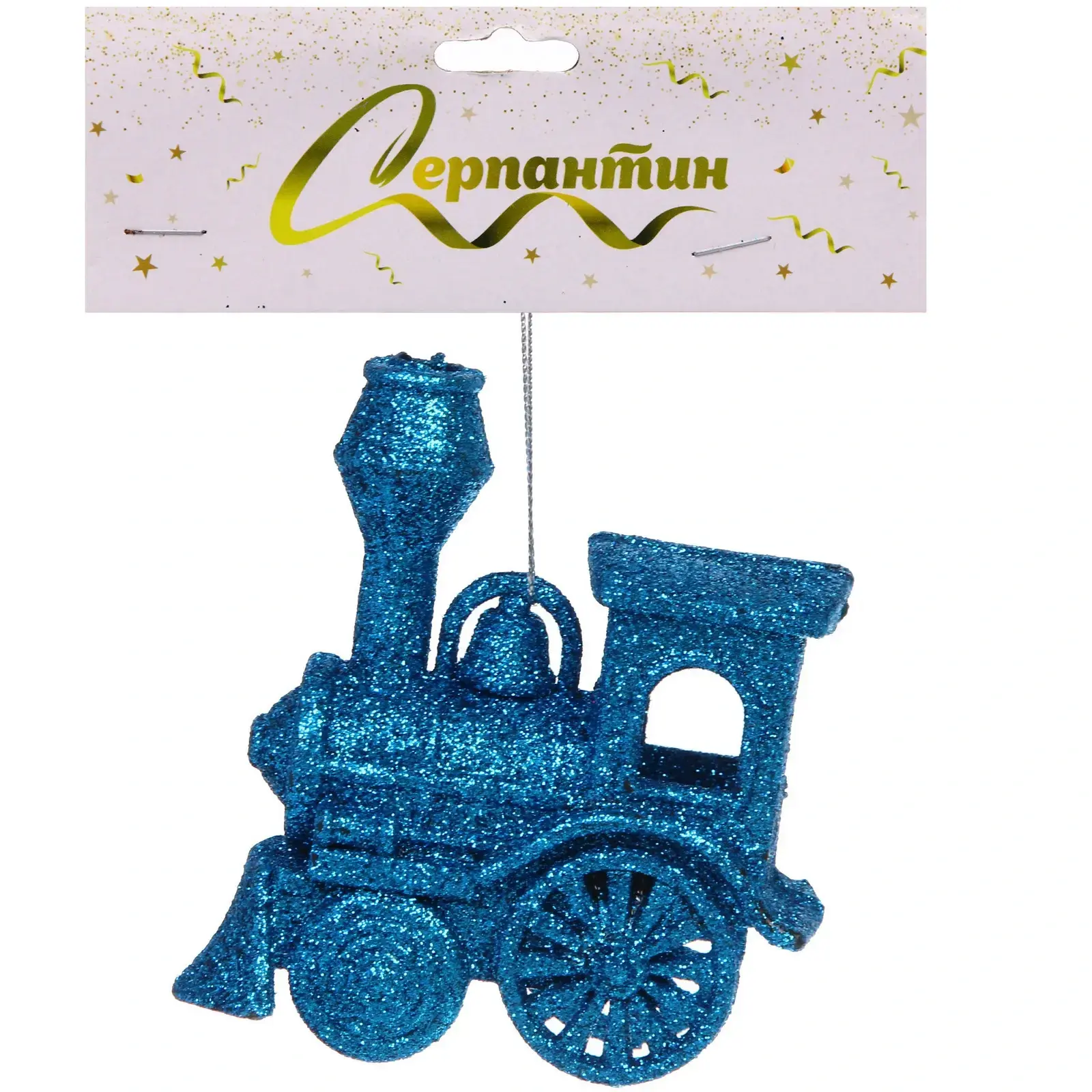 Подвеска «Волшебный паровозик» 9 см, голубой, пластик с блестками, новогодний декор