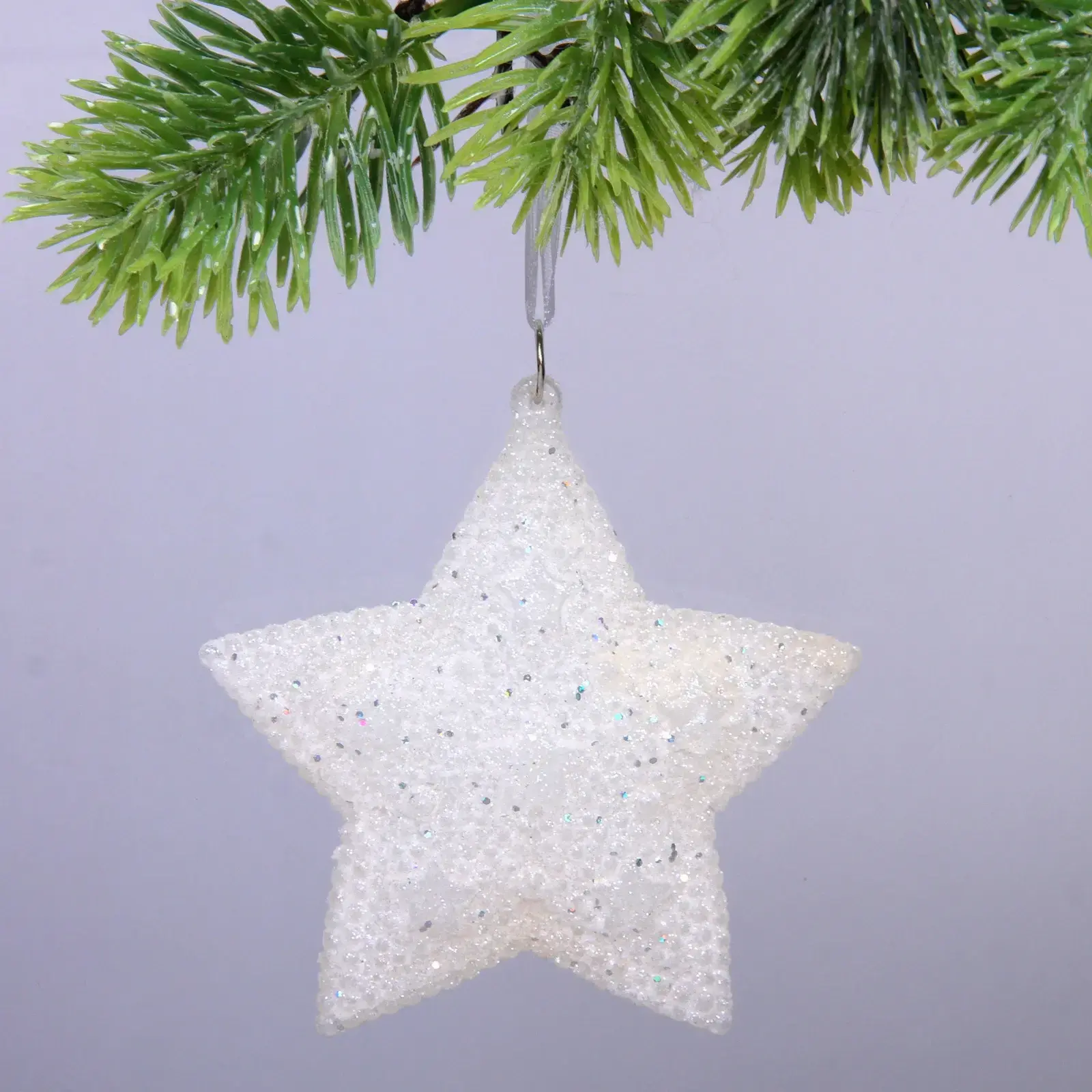 Размер подвески составляет 9,2*9,7 см, что делает её идеальной для использования в качестве акцента в декоре. Изготовлена из качественного пластика, она устойчива к повреждениям и легко очищается. Белый цвет и блестящая поверхность создают эффект мерцания, что делает её особенно привлекательной в вечернее время.