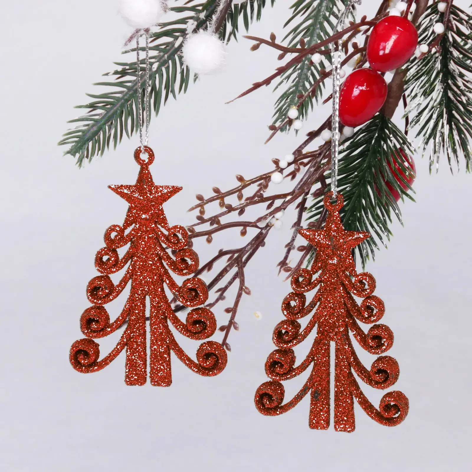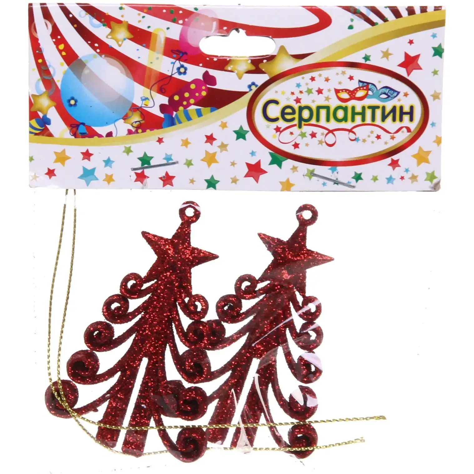 Новогодние подвески 'Елочка кудрявая', 7см, красный/оранжевый, набор 2шт