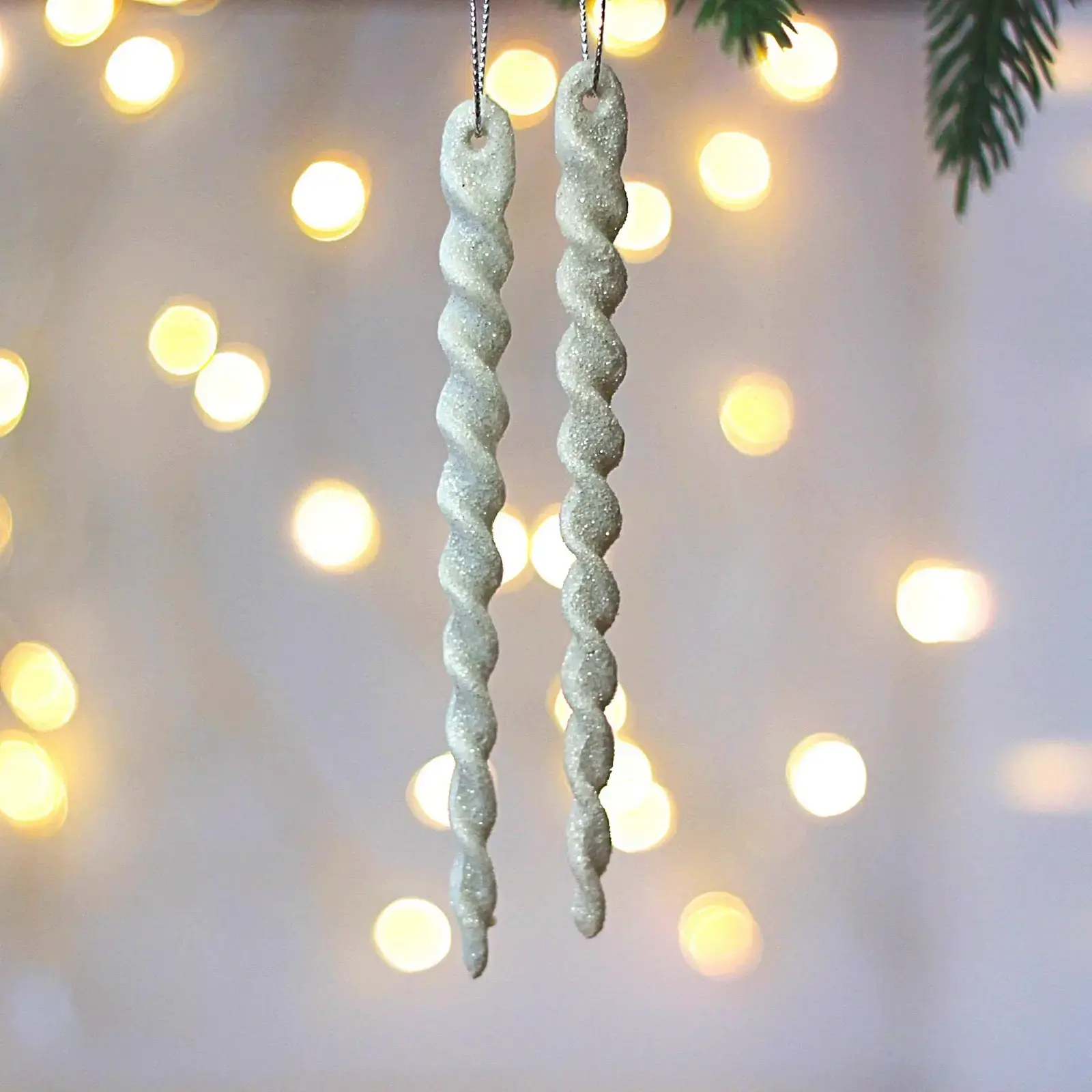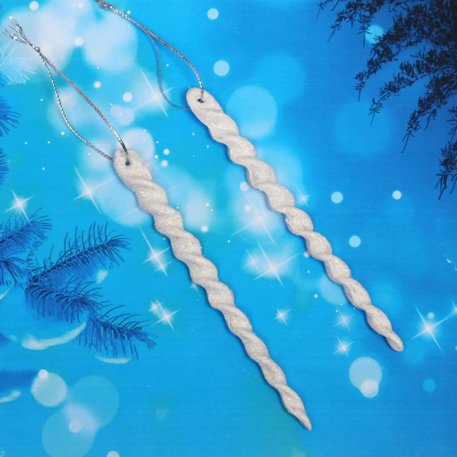 Подвески в блестках «Ледяные сосульки» — это идеальный элемент декора для вашего дома в новогодние праздники. Их изысканный белый цвет и блестящая текстура создают атмосферу волшебства и уюта. Эти подвески длиной 10 см легко впишутся в любой интерьер, добавляя нотку элегантности и стиля.