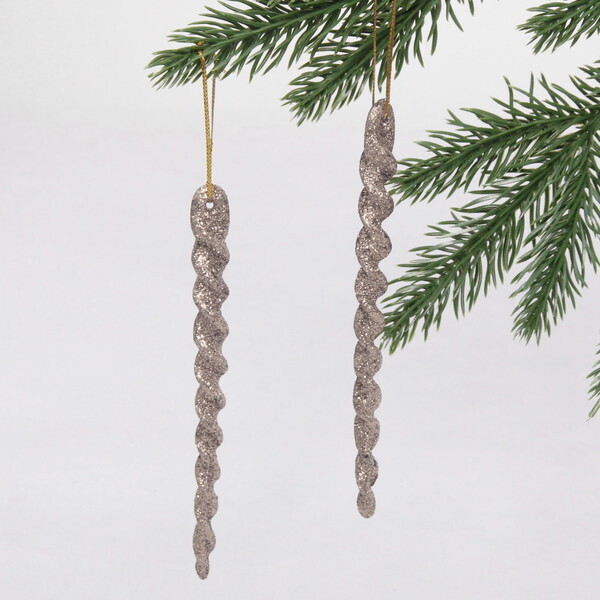 Погрузитесь в атмосферу зимней сказки с подвеской для ёлки «Ледяные сосульки» — изысканная деталь, которая мгновенно придаёт интерьеру ощущение уюта и волшебства праздника. Блестящая поверхность и спиральная форма создают игру света, добавляя живой акцент даже самой лаконичной ёлке.