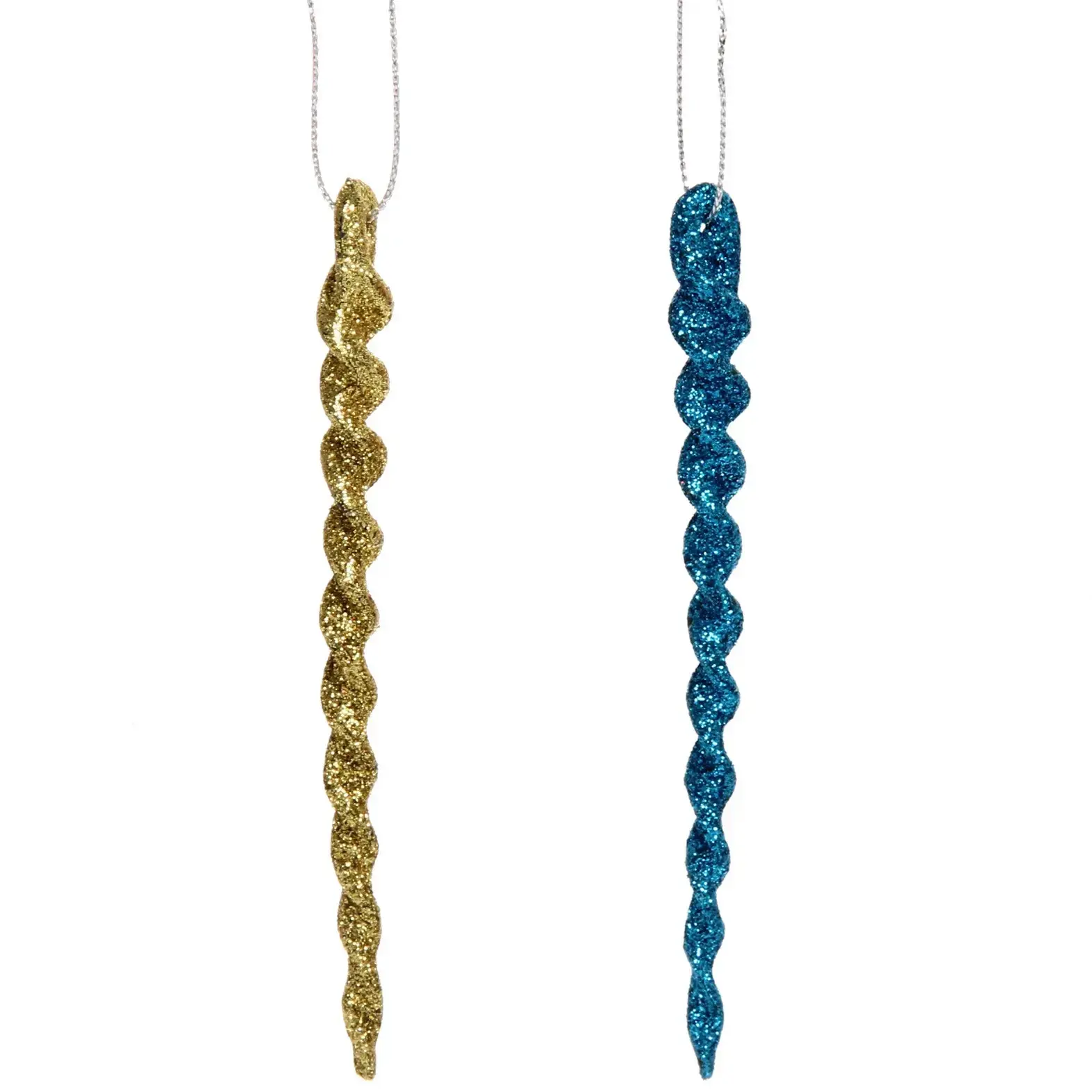 Подвески в блестках «Ледяные сосульки» — это идеальное решение для создания праздничного настроения в вашем доме. Эти декоративные элементы длиной 10 см, выполненные в ярких синих и золотых тонах, добавят искрящийся акцент к вашему новогоднему оформлению. Благодаря блестящей поверхности, они будут привлекать внимание и создавать эффект волшебства в любое время года.