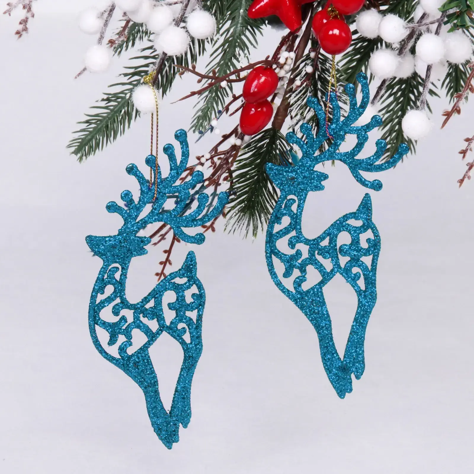 Создайте неповторимую праздничную атмосферу благодаря этим очаровательным подвескам в виде оленей. Их ярко-голубой цвет с мерцающими блестками добавит волшебного сияния вашему новогоднему декору.