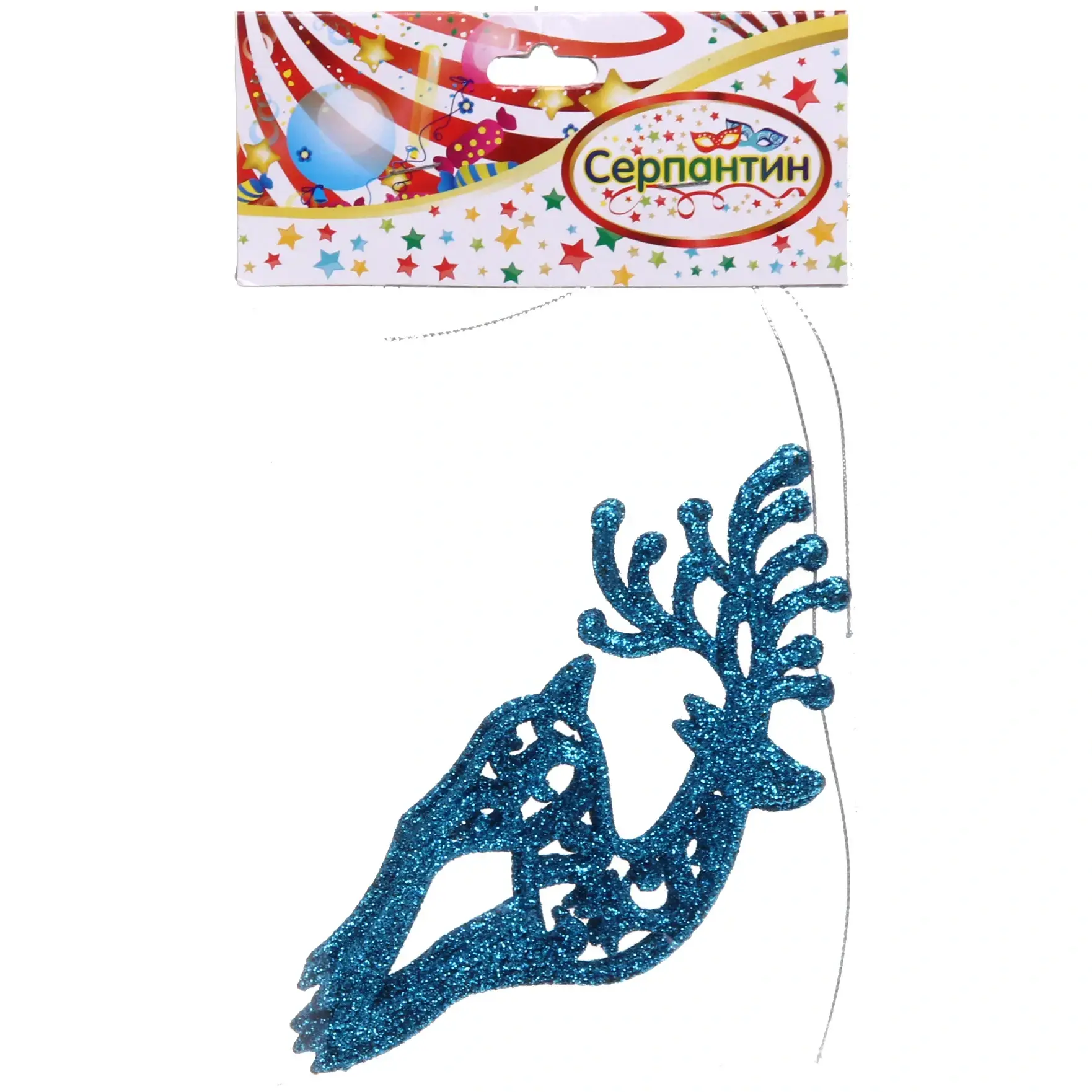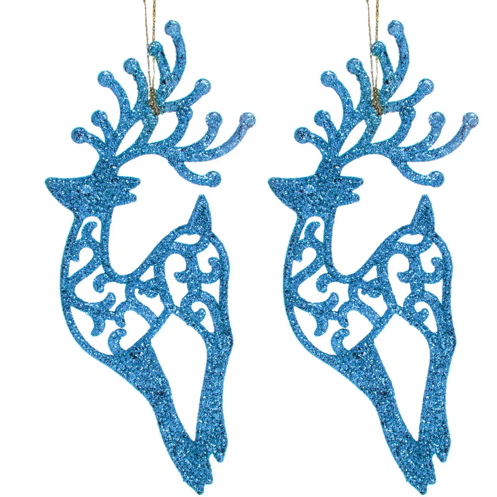 Подвески декоративные "Олень" 14см, голубой блестящий пластик, набор 2шт