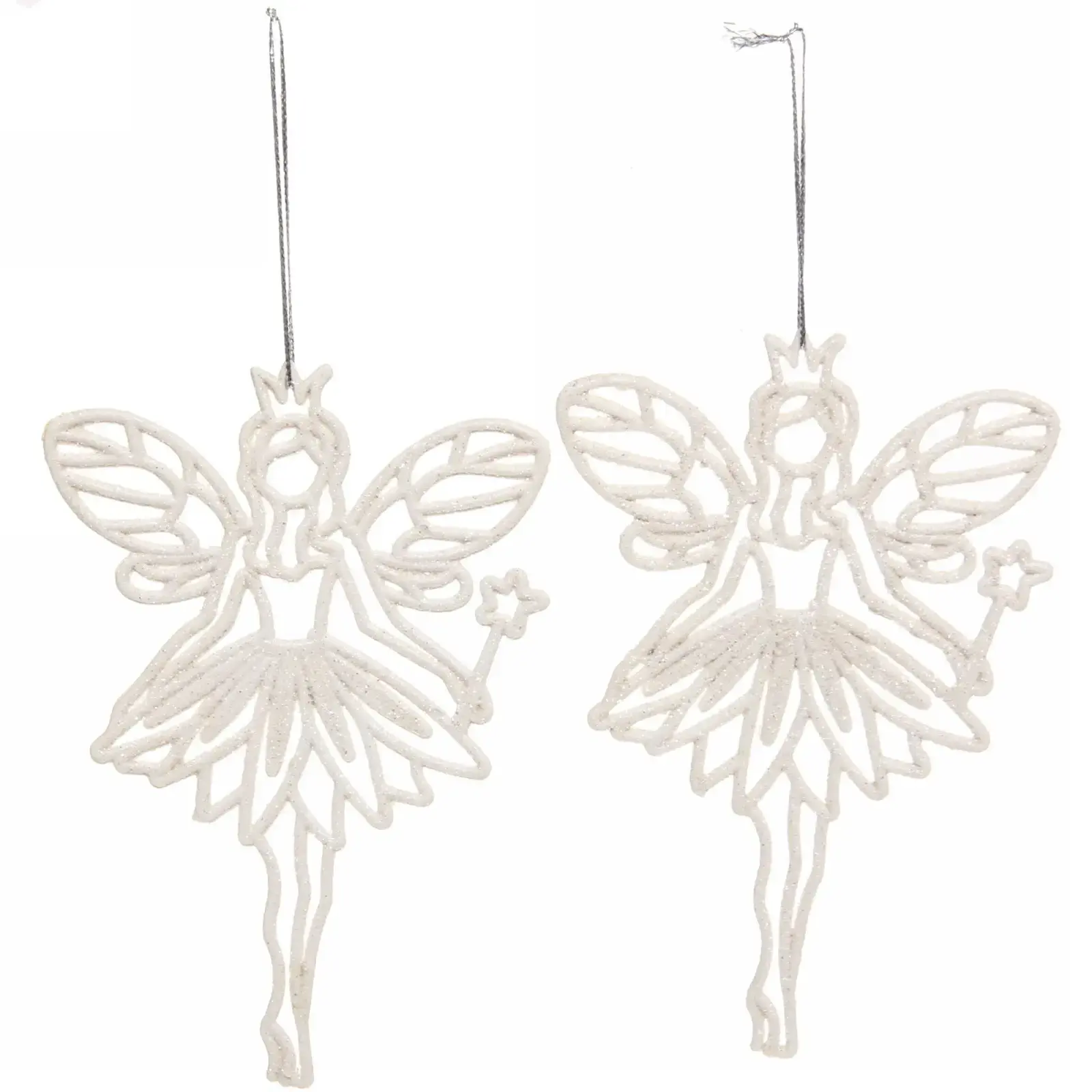 Создайте атмосферу настоящего волшебства с подвесками в блестках «Снежная фея». Эти изящные украшения высотой 14 см, выполненные в белом цвете, добавят нотку сказки в ваш новогодний декор. Каждая фея украшена блестками и имеет детализированный дизайн с большими крыльями и короной, что делает их идеальными для праздничного оформления.