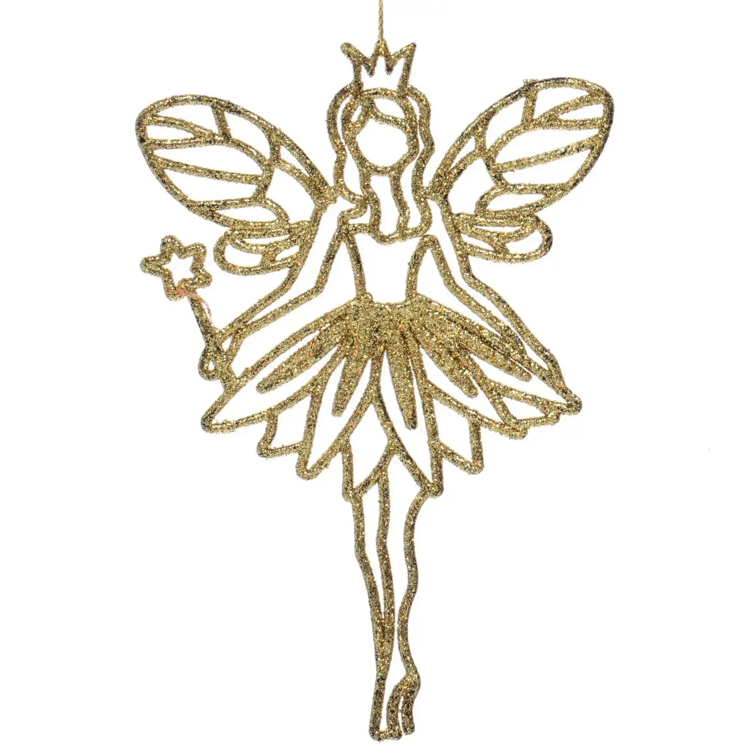 Подвеска изготовлена из пластика с глиттерным покрытием, что обеспечивает лёгкость, долговечность и простоту крепления. Размер 14 см идеально подходит для украшения не только ёлки, но и других праздничных композиций.