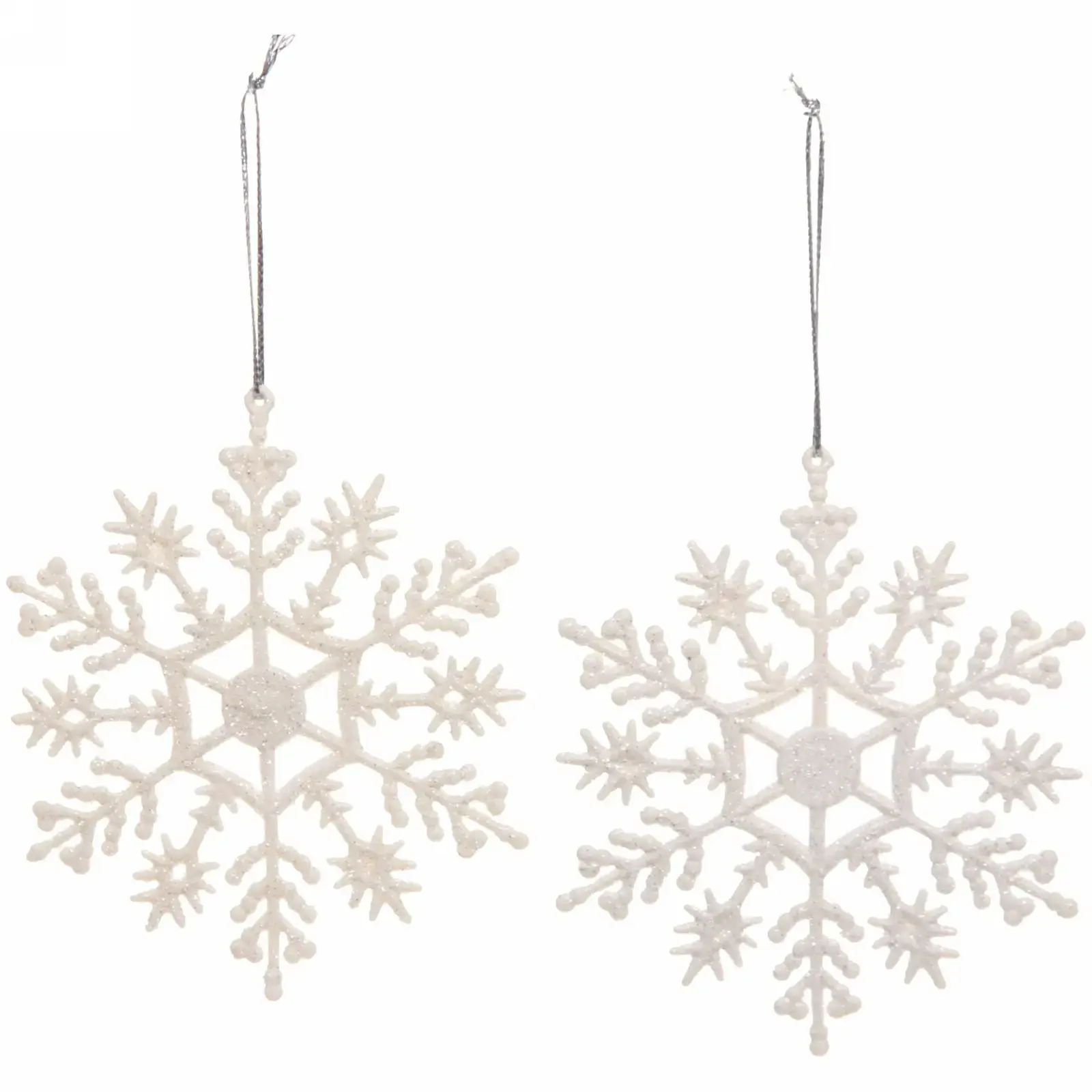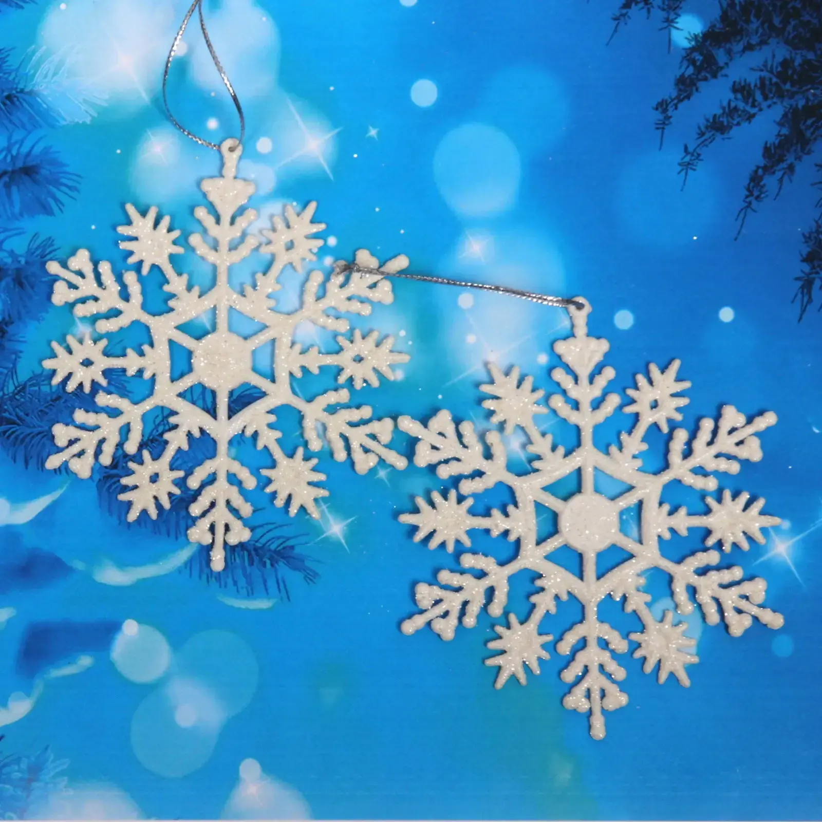 Эти великолепные подвески в блестках добавят волшебства в ваш интерьер и создадут уютную атмосферу праздника. Их белый цвет и изящный дизайн идеально подойдут для новогоднего декора, а также для оформления других зимних мероприятий. Каждая снежинка имеет размер 9,5 см и выполнена из легкого пластика, что делает их удобными для подвешивания и использования в различных композициях.