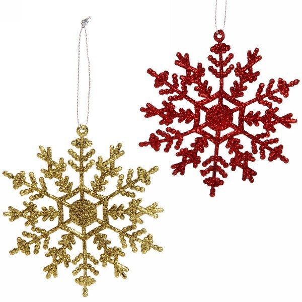 Каждая снежинка имеет размер 9,5 см и выполнена из прочного пластика, что обеспечивает их долговечность. Набор включает 2 подвески — одну красную и одну золотую, что позволяет вам разнообразить декор. Эти украшения станут отличным дополнением к вашему новогоднему оформлению и подарят радость вам и вашим близким.