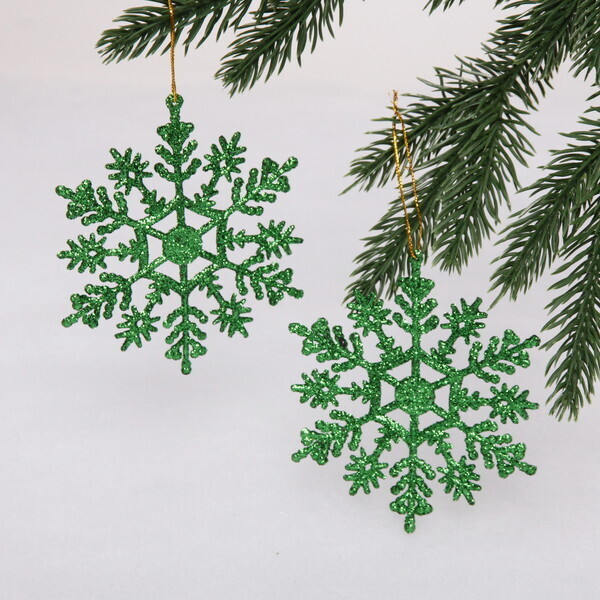 Подвески в блестках «Зимние снежинки» — это идеальное украшение для вашего дома в новогодний период. Их яркий салатовый цвет и блестящая поверхность добавят праздничного настроения и создадут атмосферу уюта и тепла. Эти снежинки не только красивы, но и легки в использовании, что позволяет вам быстро и просто украсить любое пространство.