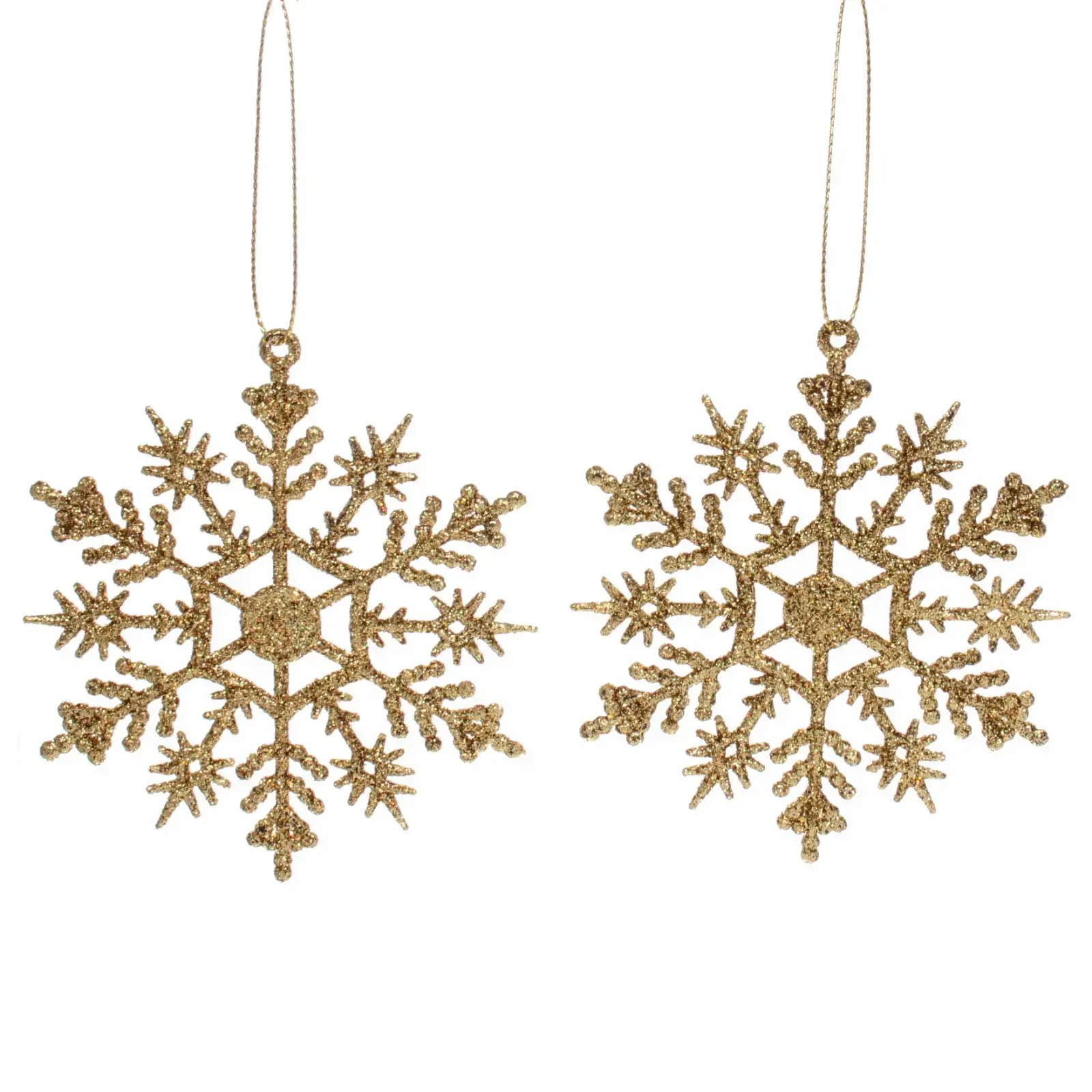 Размеры: 9,5 см. Материал: пластик. Цвет: золото. Набор включает 2 снежинки.