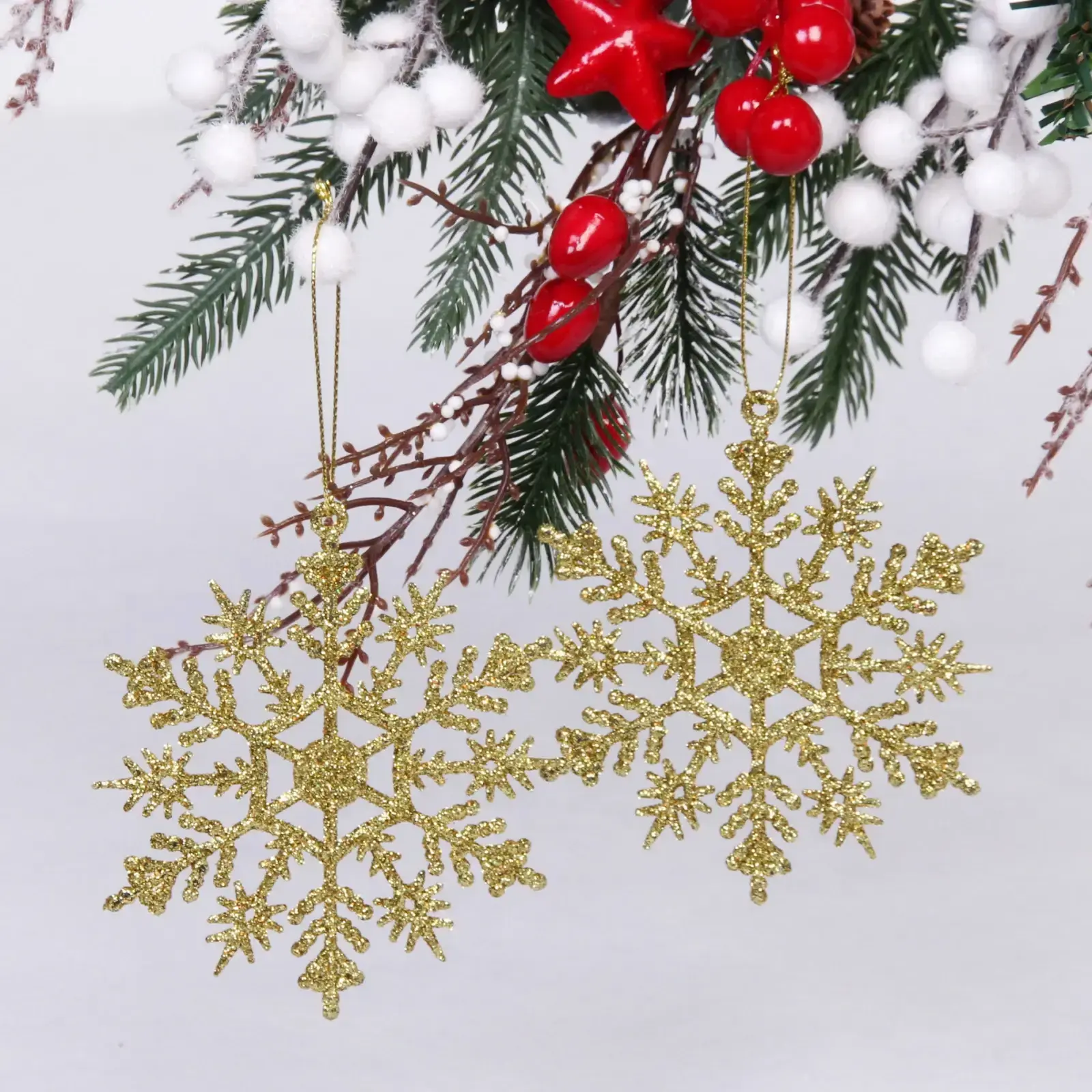 Создайте волшебную атмосферу праздника с подвесками в блестках «Зимние снежинки». Эти изысканные украшения добавят нотку элегантности и уюта в ваш новогодний декор. Золотые снежинки, выполненные из легкого пластика, прекрасно отражают свет и создают эффект сверкающего снега, что делает их идеальными для украшения елки или интерьера.