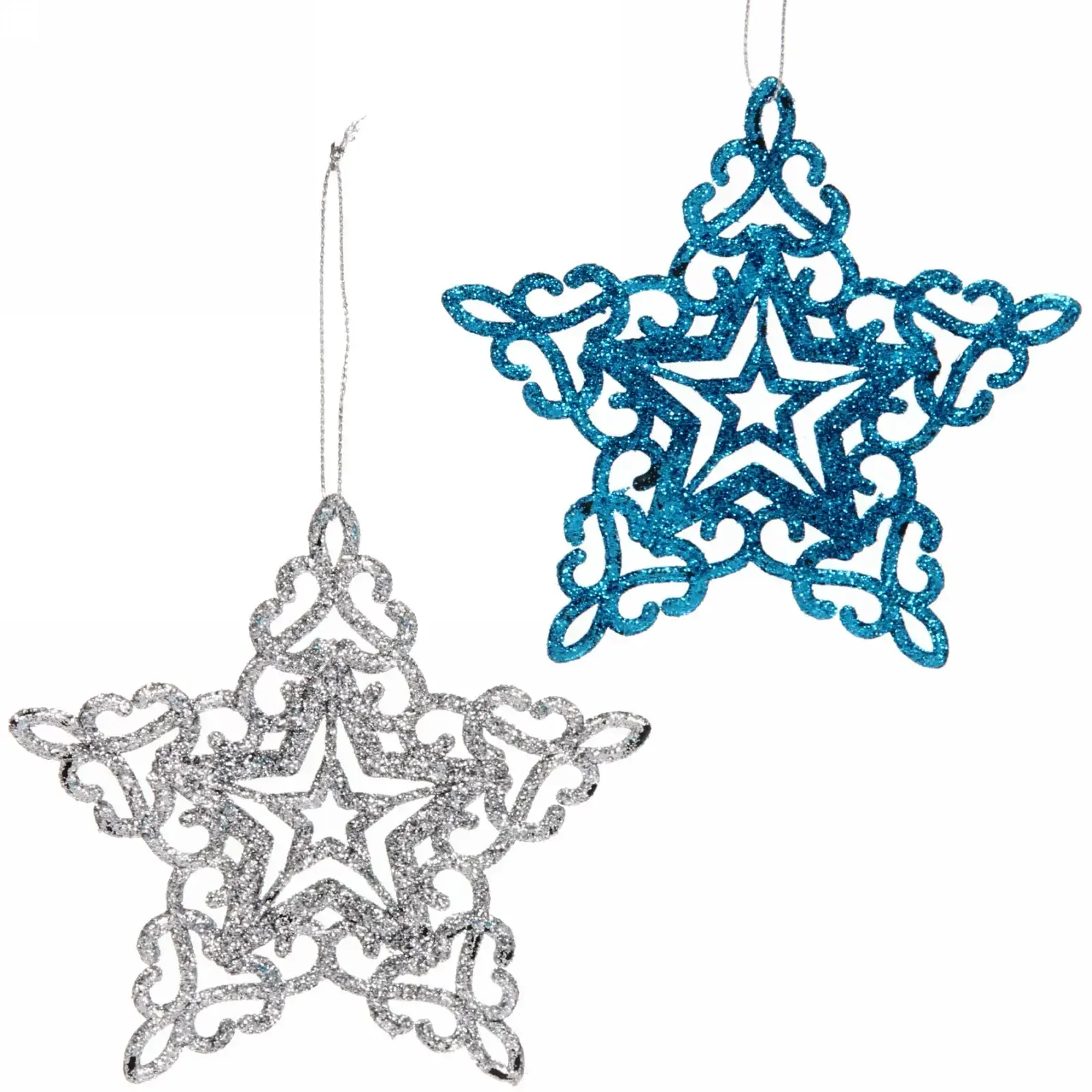 Подвески новогодние "Звездочки кружевные" 10см, синий/серебро, набор 2шт