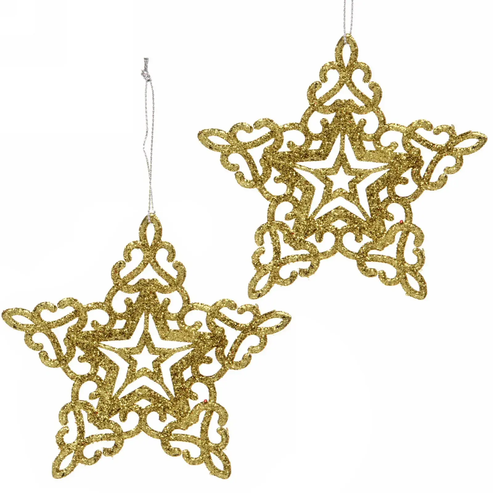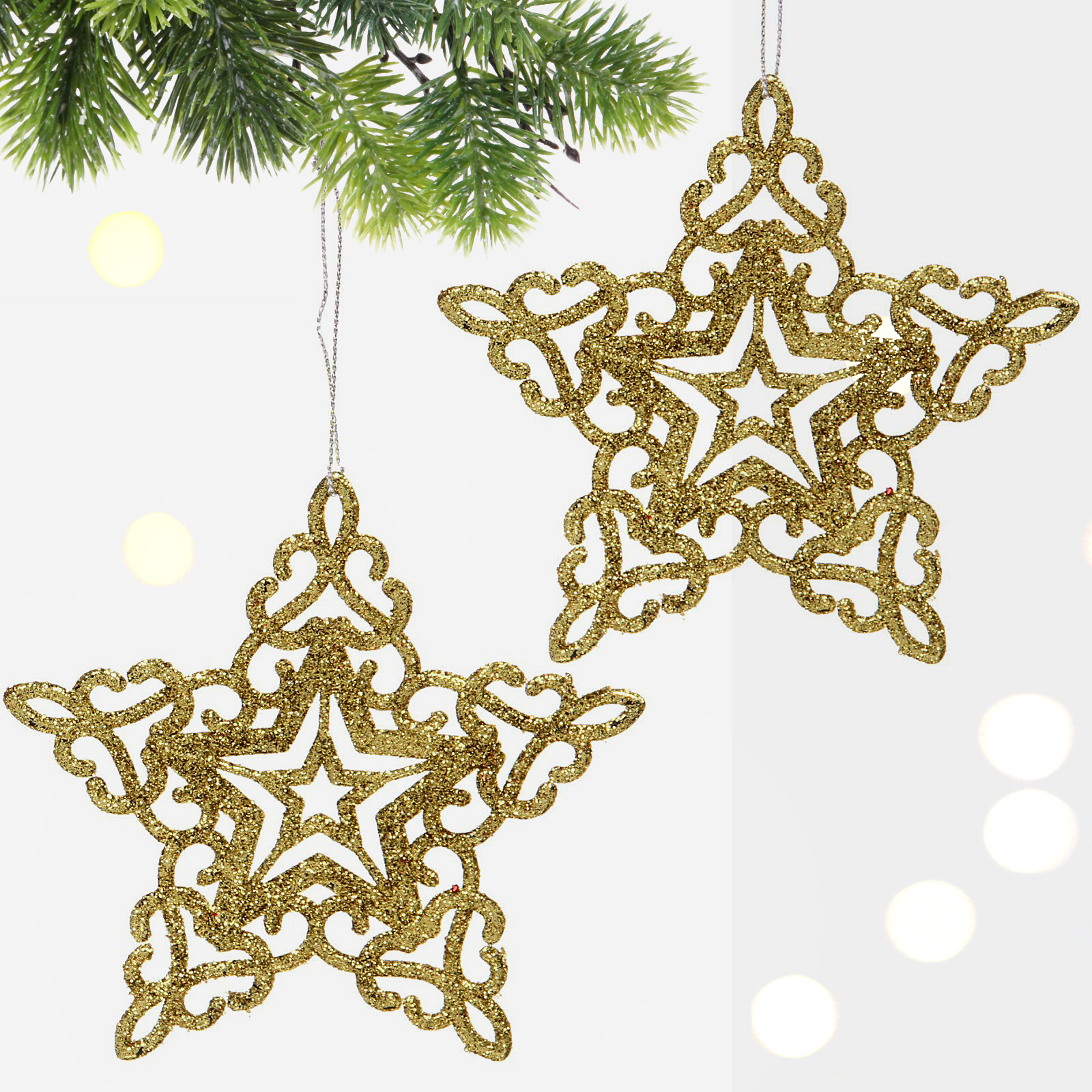 Подвески в блестках «Звездочки кружевные» — это идеальное решение для создания волшебной атмосферы на любом празднике. Эти изысканные украшения добавят блеска и стиля вашему новогоднему декору, создавая незабываемые моменты для вас и ваших близких.