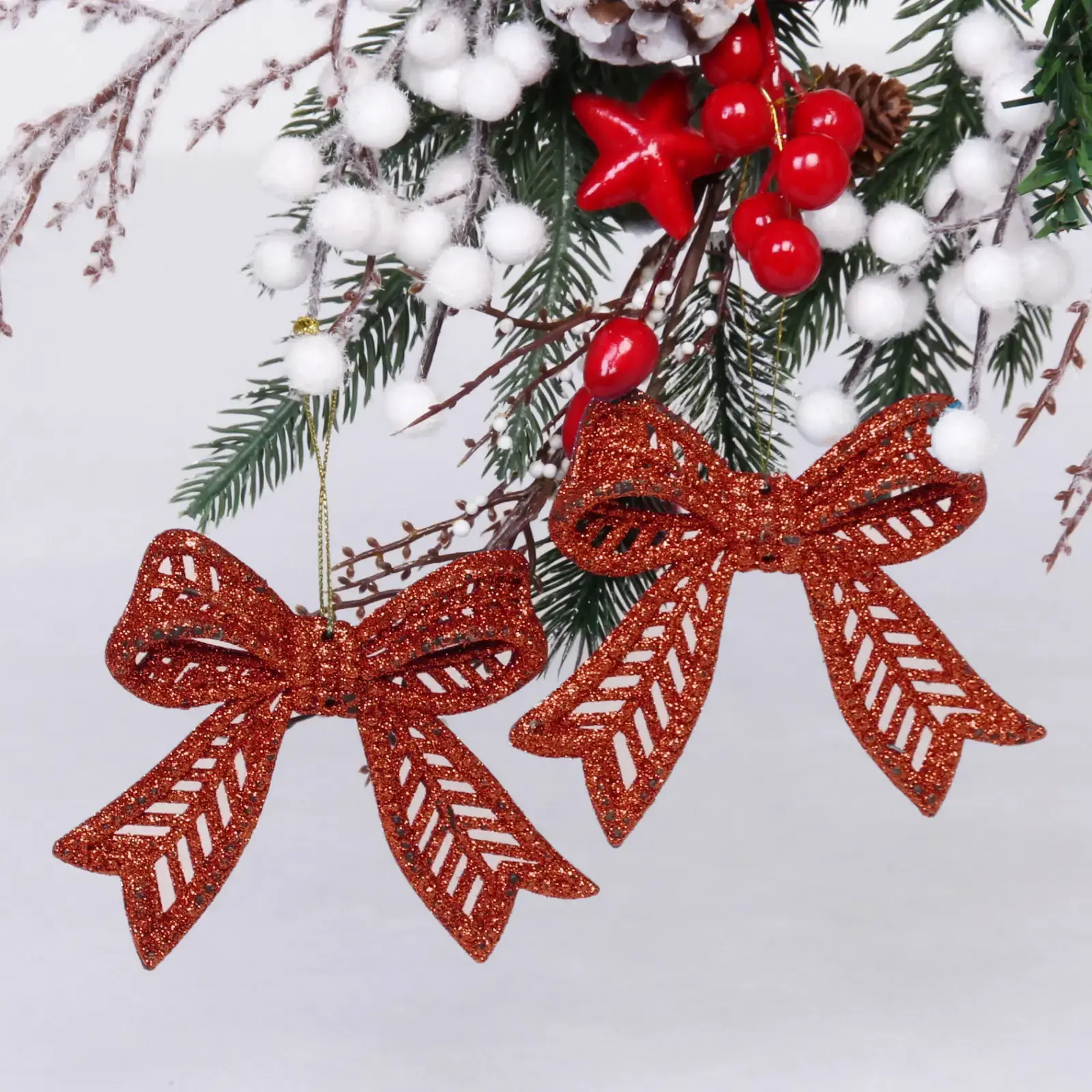 Подвески идеально подходят для украшения ёлки, дверей, окон или стен. Их можно использовать как самостоятельный элемент декора или в сочетании с другими новогодними украшениями. Благодаря удобной золотистой нитке для подвешивания, вы сможете легко разместить бантики в любом месте. Они подойдут как для домашнего использования, так и для оформления праздничных мероприятий.
